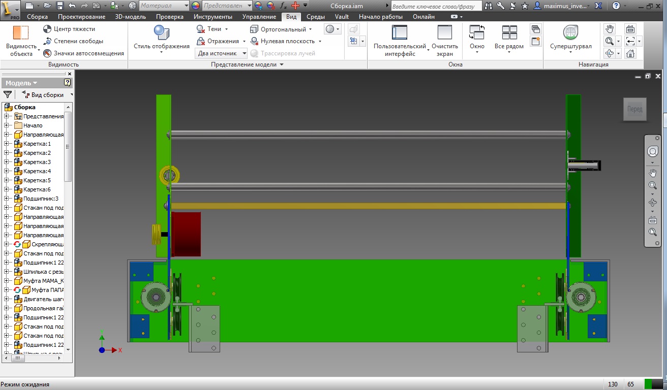 Придя вчера с универа в общагу, решил обдумать конструкцию оси У. недавно виделся с фотографом, он снимал видео, и использовал приспособление для так называемого "подъезда". Конструкция была сделана с мебельных направляющих и колес для них. Я взял за основу эту идею. Через 6 часов моделинга, ось была готова (фото 4-8).