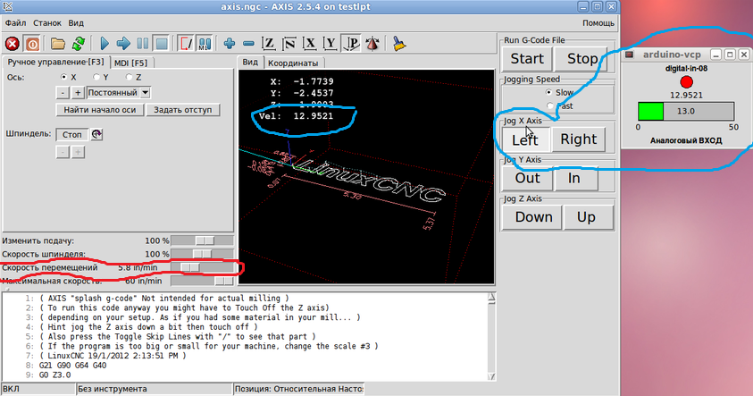 Это как? Крутишь галетник - меняется значение в LinuxCNC и меняешь значение в LinuxCNC - крутится галетник?Techno писал(а):Есть связь от галетника к Linuxcnc и обратно.
