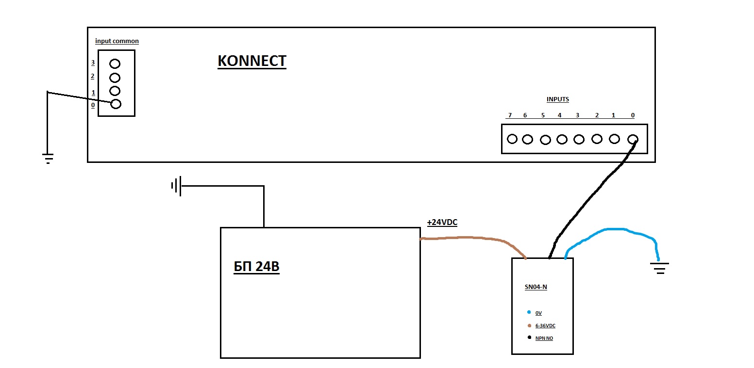 Господа Гуру, подскажите, пожалуйста, всю голову уже изломал... Возможно вопрос тупой, но все-таки - подключаю к Коннекту концевик SN04-N как во вложении, настраивают в Config&Flash, все отлично работает (поставил действие - остановка мотора), НО - светодиод на датчике горит ПОСТОЯННО, а не только при срабатывании на металл (как например когда подключен только к питанию). Если отключить минусовой провод от Bank Commons Коннекта - светодиод загорается только на металл, но функцию свою, естественно, не выполняет. Где может быть косяк?
