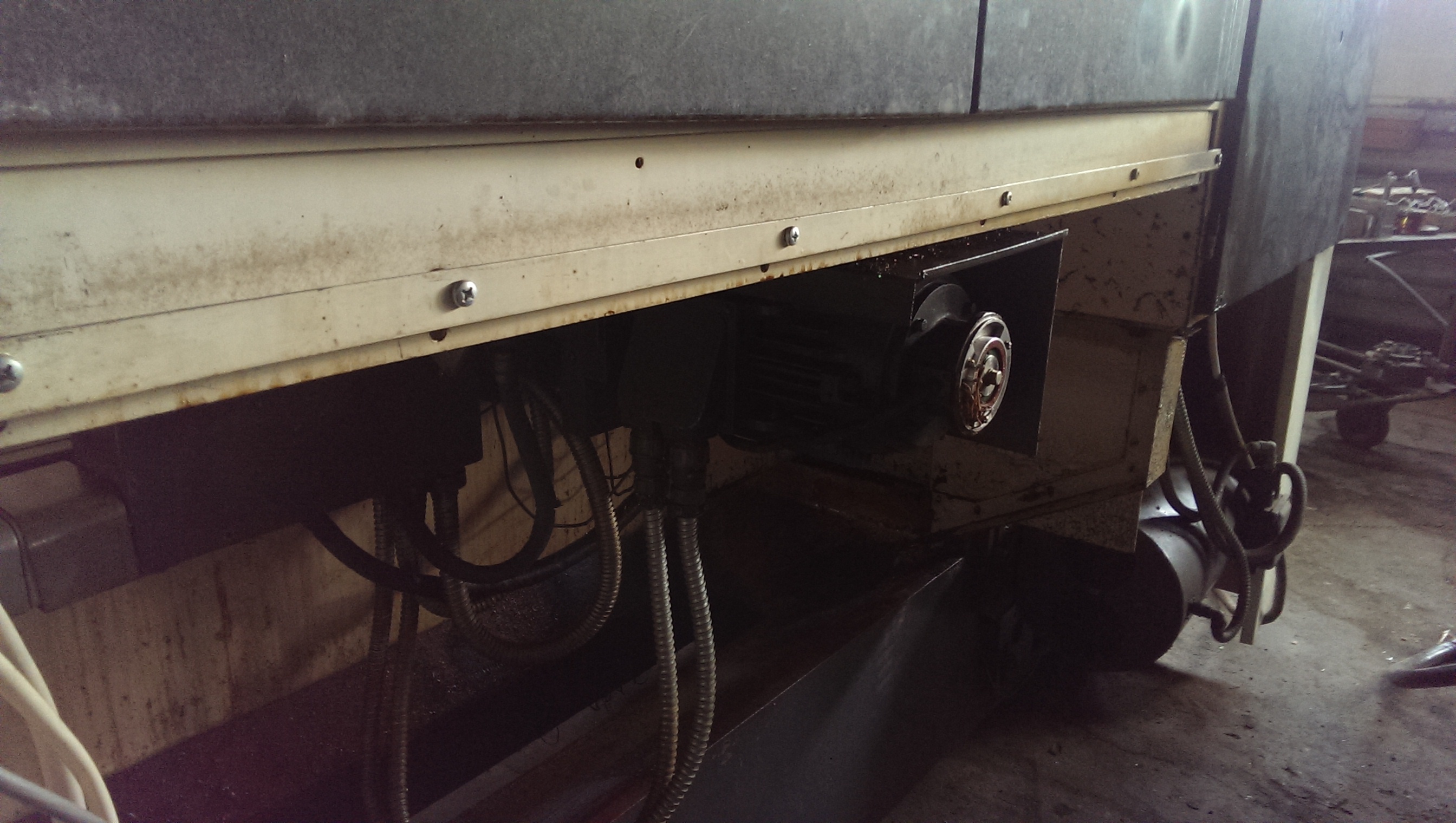 Под электрошкафами только один кожух на станке висит. Станок сейчас перевозят на другое место, поэтому часть кожухов снята. Сейчас станок в таком состоянии:aftaev писал(а):Мне бы фото как крепятся защитные кожуха что под электрошкафами
