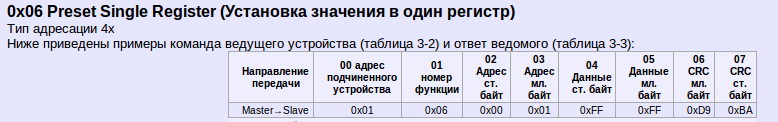 Итак,вся строка выглядит как: 01 06 00 00 00 0F C9 CE