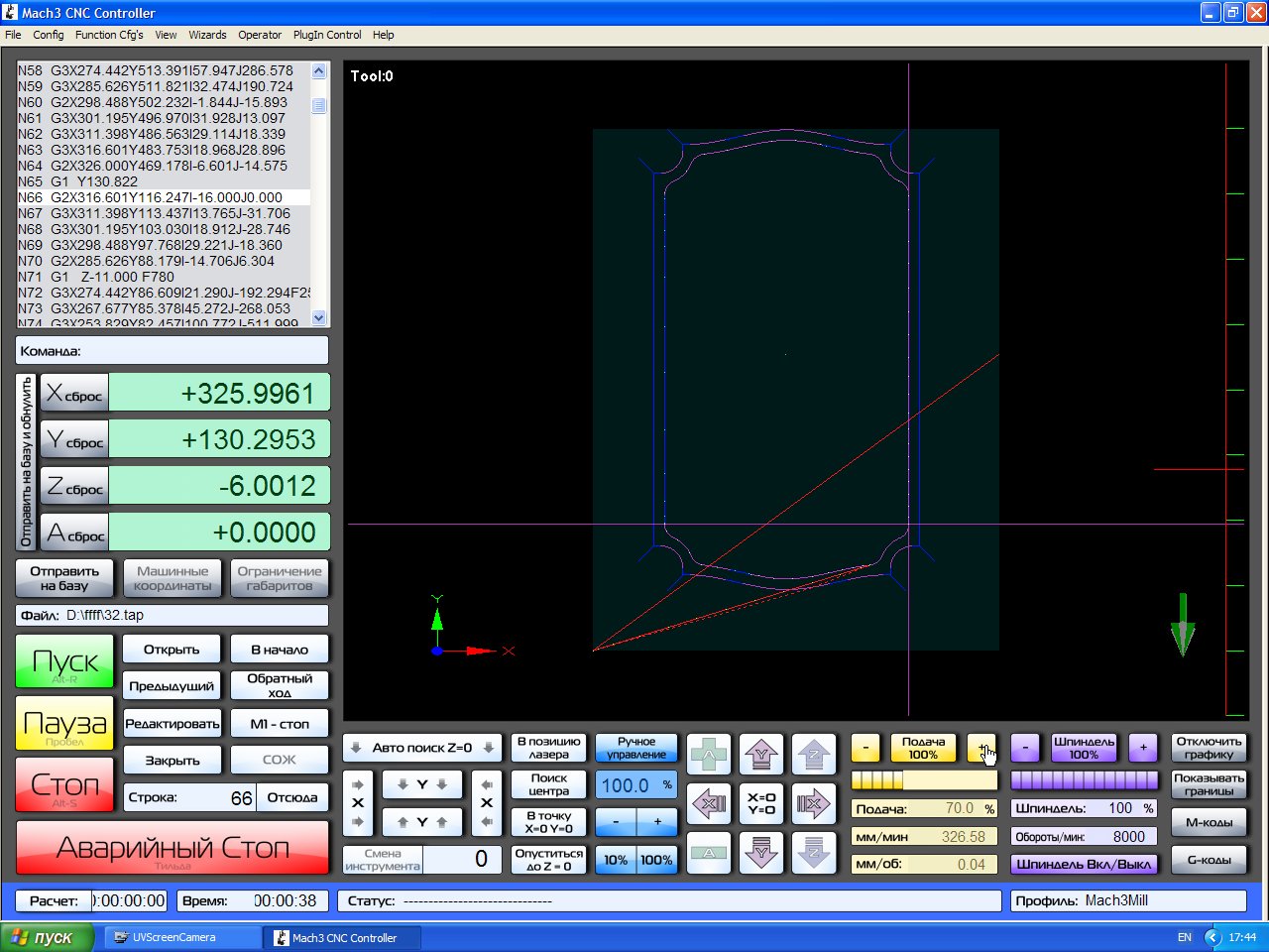 Когда работает станок то работают с задержкой я бы даже сказал глючат на какоето время.michael-yurov писал(а):Ну вот - сейчас оказывается mach2, а не mach3.