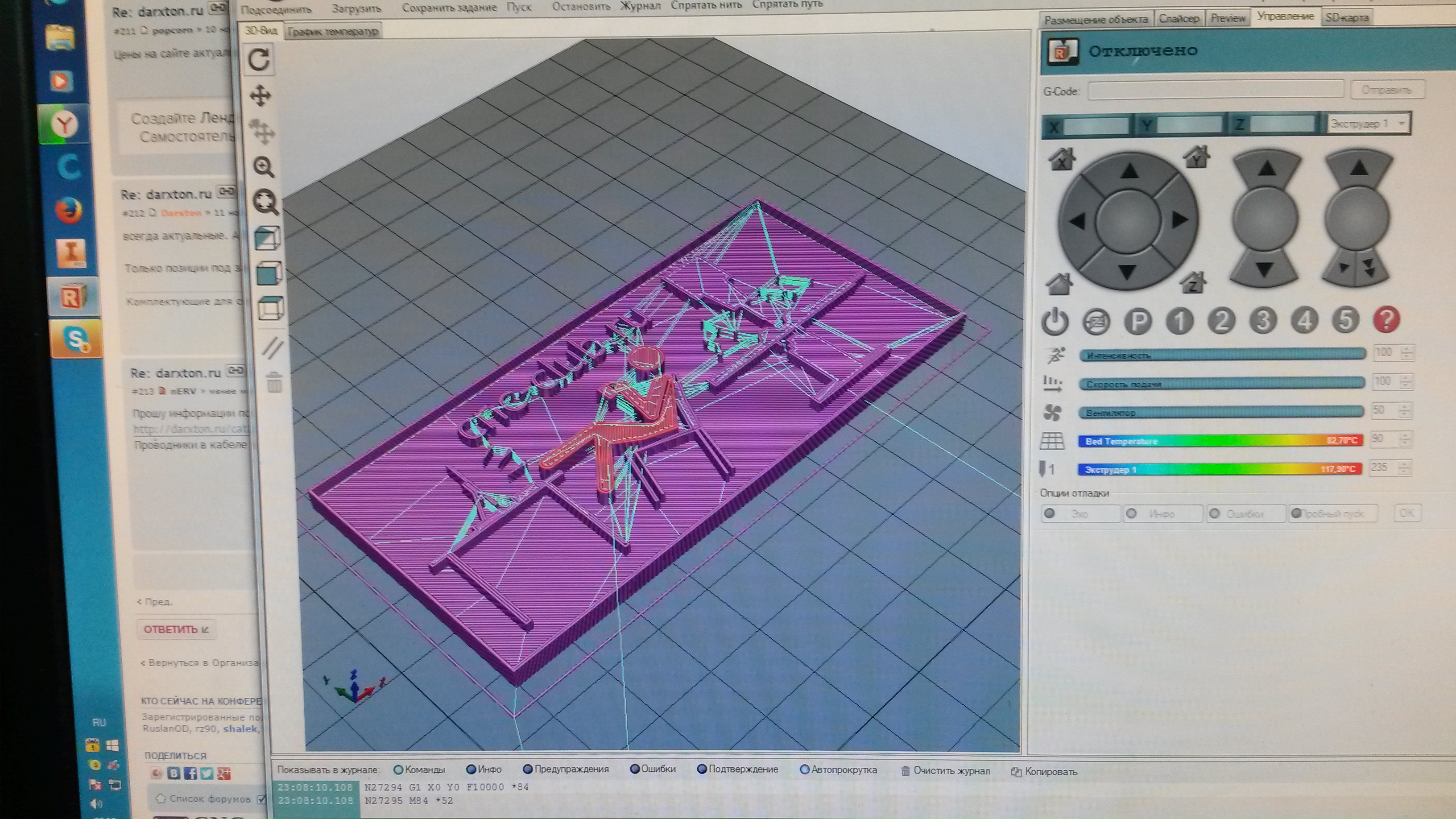Температура стола?balomut писал(а):Толщина слоя 0.2 мм , материал АВС FL33 1.75мм, печатал 3ч 20 минут .
