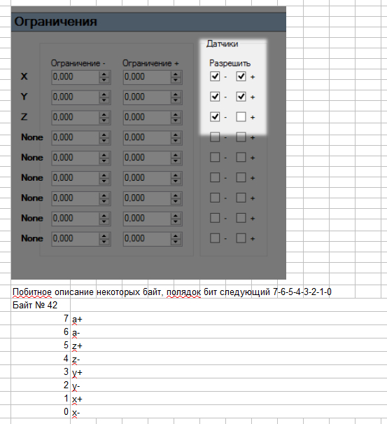 Ограничения сюдя по всему не поддерживаются, либо передаются в основном протоколе с заданием координат, т.к. изменений в протоколе установок не увидел.