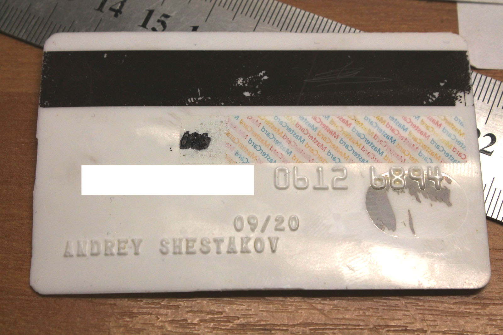 А пластик просто налил на кредитку, детализация тоже превосходная. Правда, отодрался он потом от кредитки вместе с частью магнитного слоя, слоя для подписи и кусочком голограммы