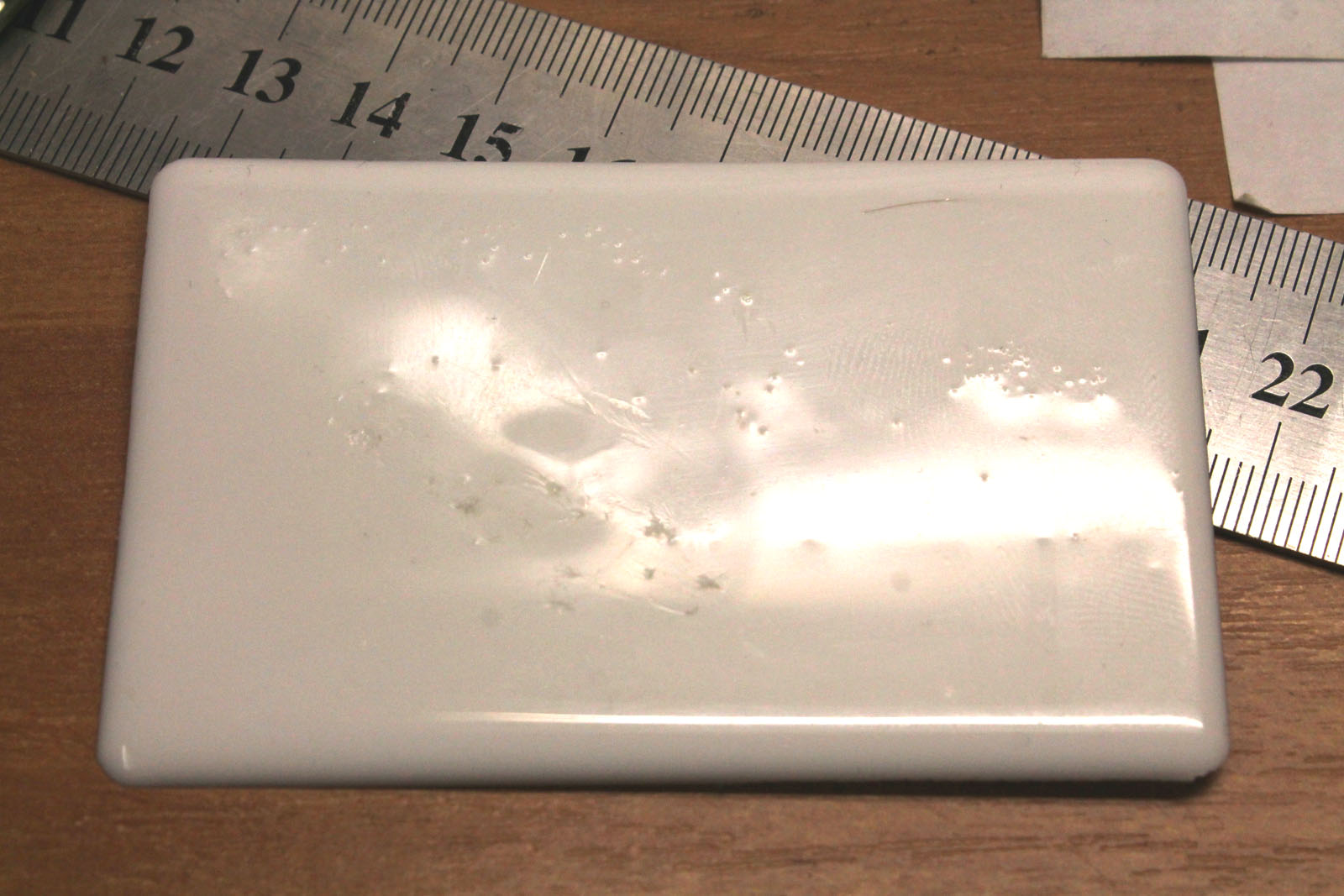 Пластик изначально прозрачный и начинает белеть по мере застывания: