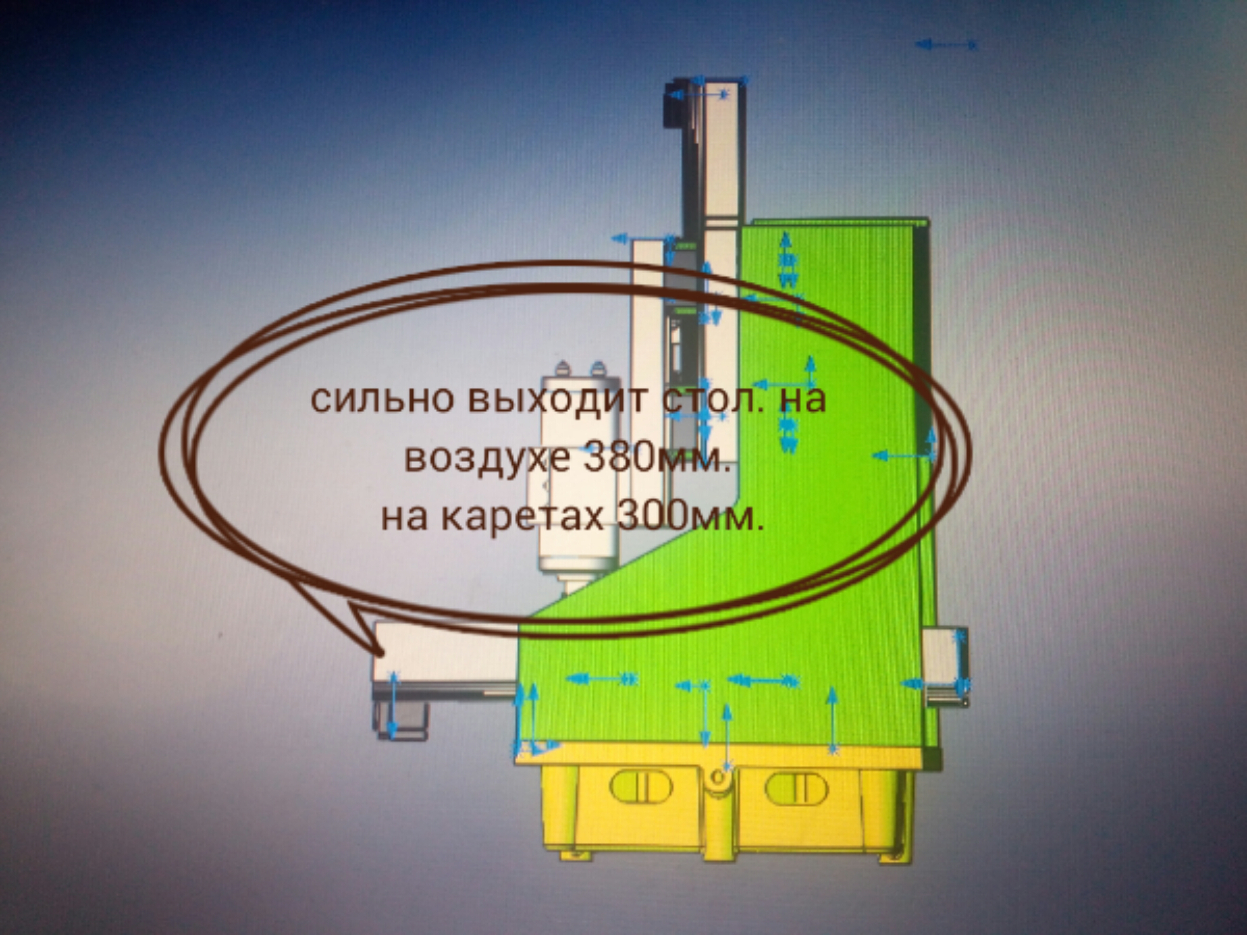 Беспокоит то-что стол свисает на воздухе, и при обработке, не может вибрировать? Еще фреза попадает не по центру станка, а ближе к краю как указанно на фото.