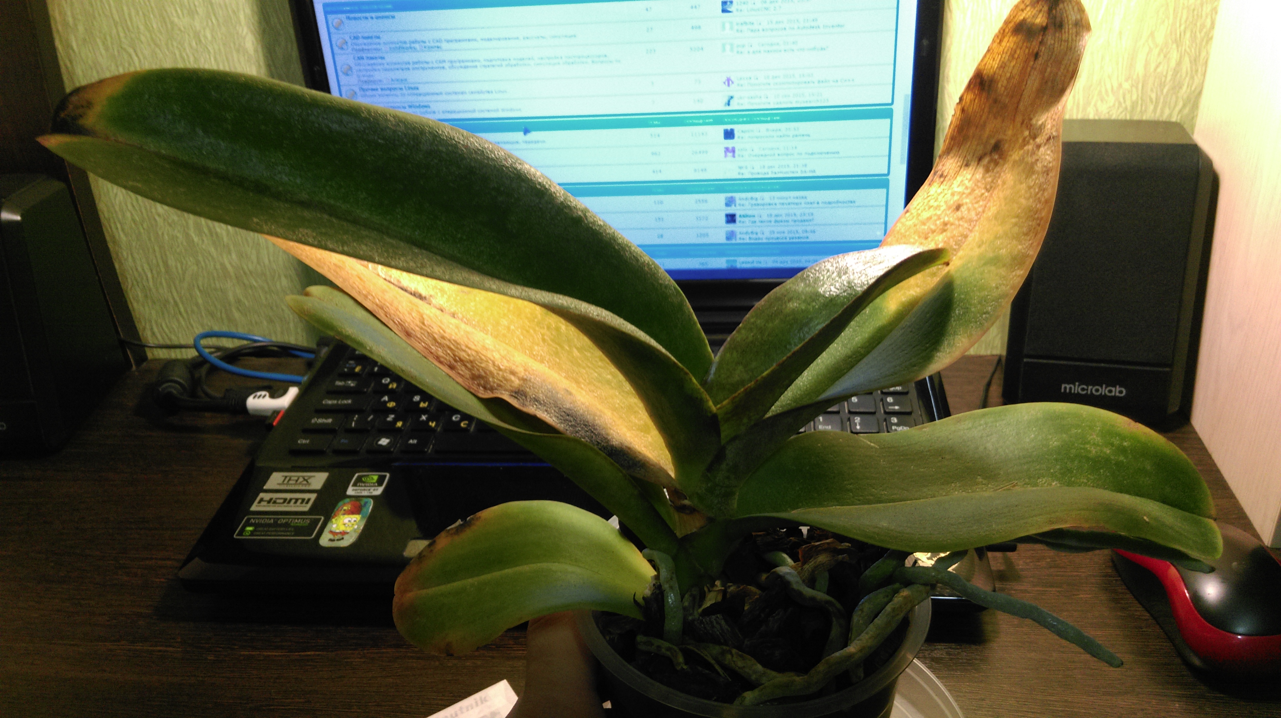 Орхидею крайне не желательно пересаживать, огромный стресс, я ей и так листья почикал.