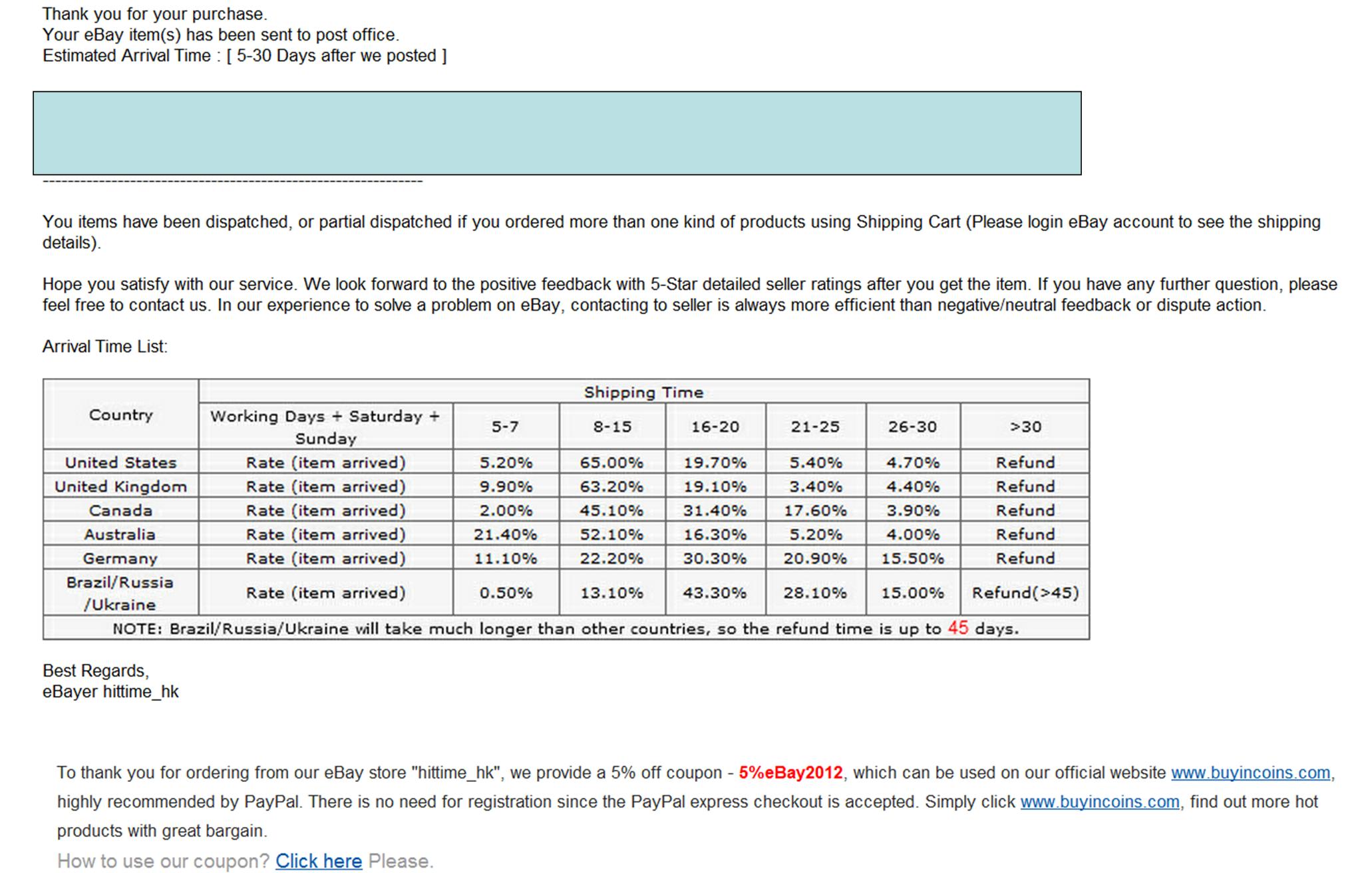 там типо написано: что мы отправили, и если посылка через 30 дней не приползет они вернут деньги, но так как Бразилия, Россия, Украина лысые страны то вернут деньги если больше 45 дней (правда диспут можно открыть ДО 45 дней).