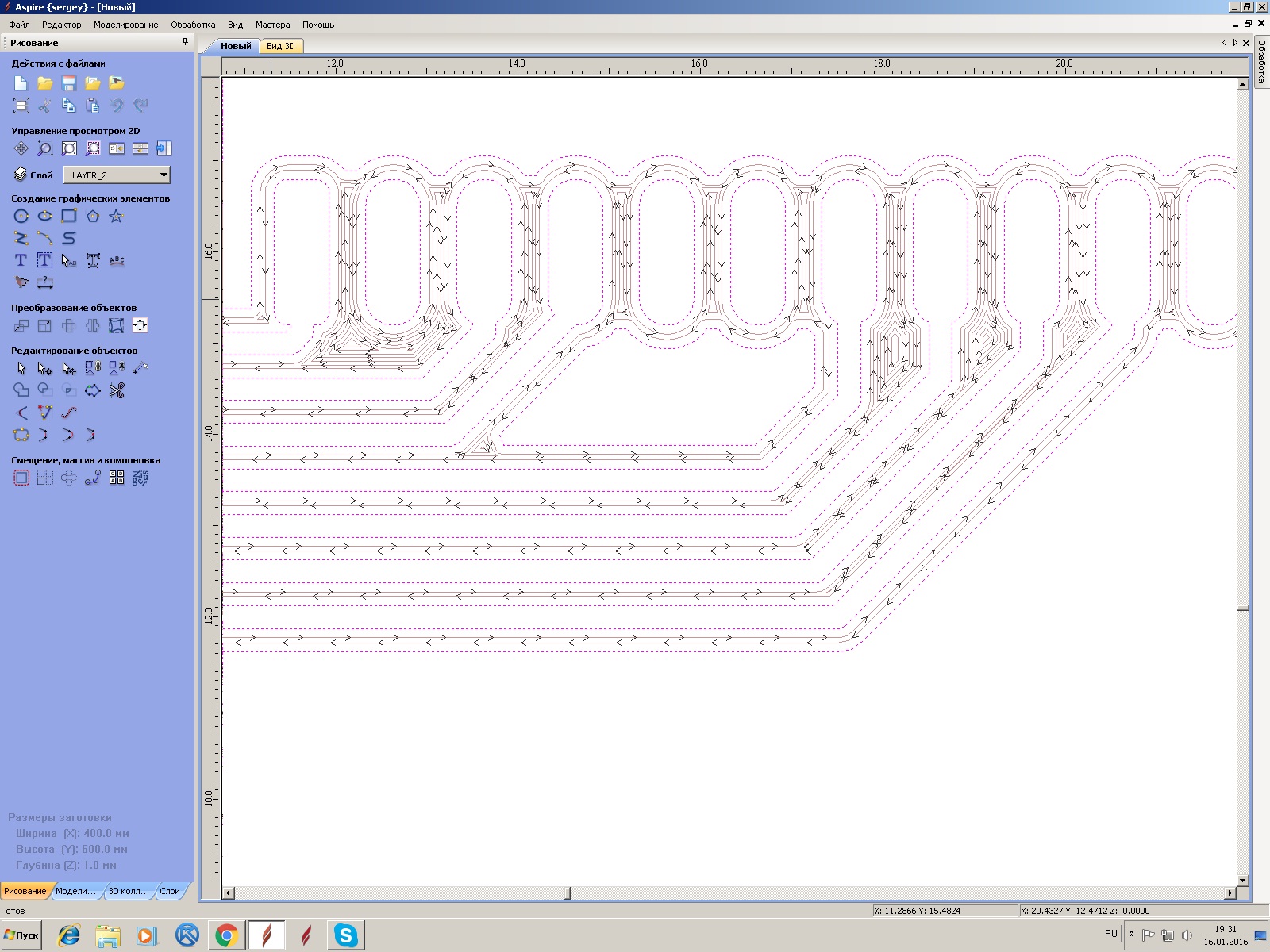 Сегодня пробовал запустить тестовую программу, за проход на глубине 0.05 снимает ширину 0.5