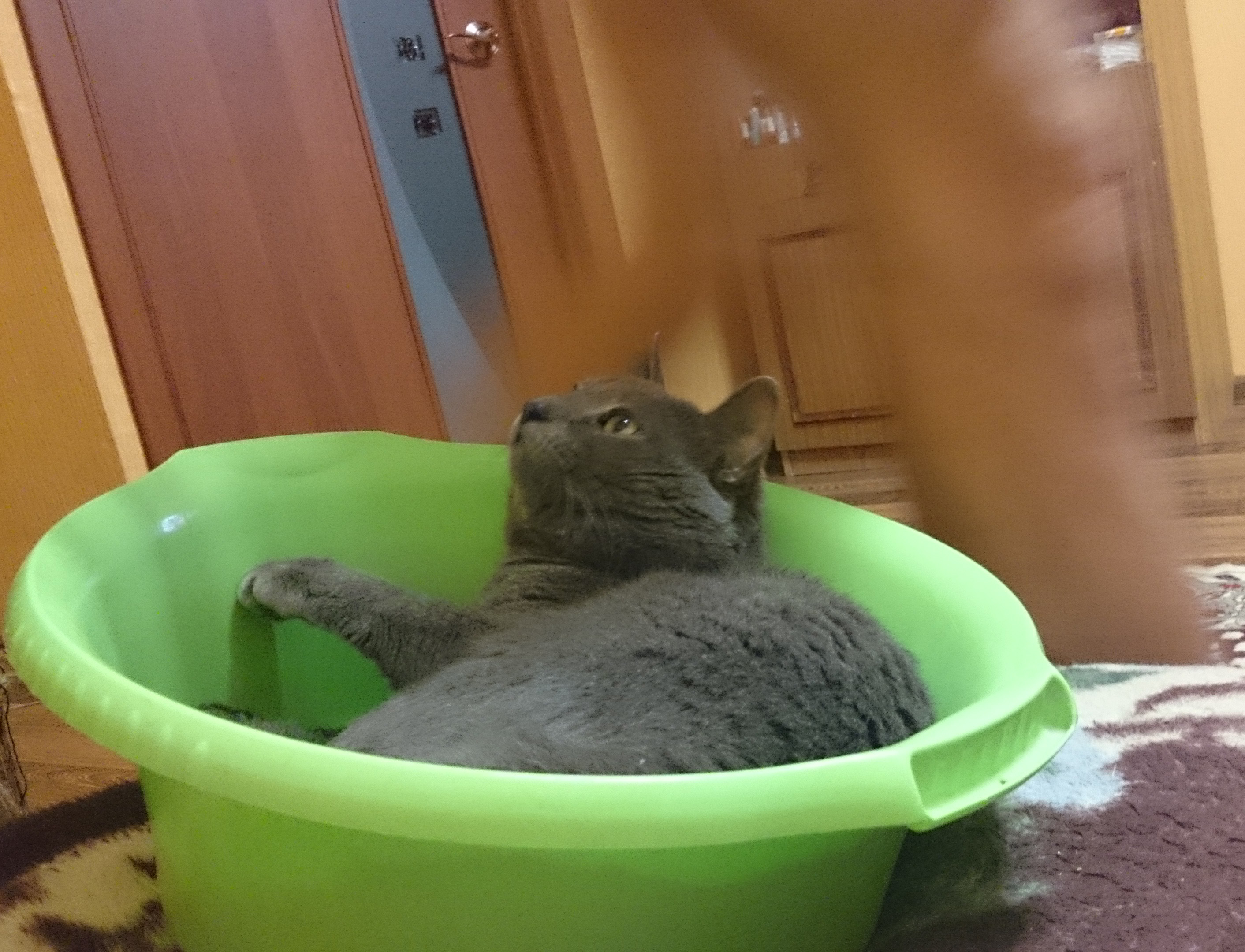 Пока была мелкая, постоянно сидела в птичьей кормушке на балконе...