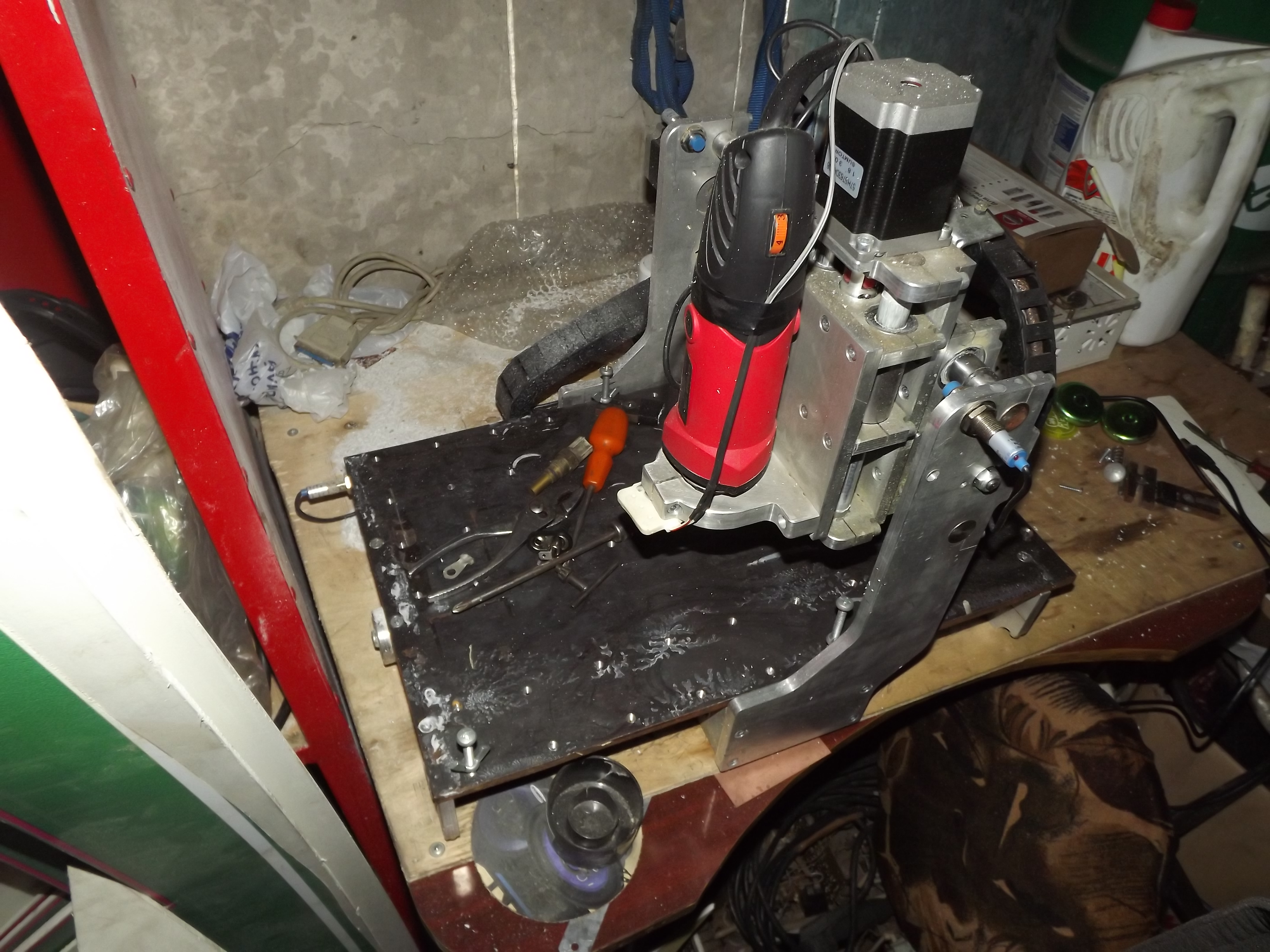 В текущем варианте установлено обычное реле для запуска шпинделя, при старте которого иногда контроллер подвисает - решение заменить на твёрдотельное (куплено ждёт тепла