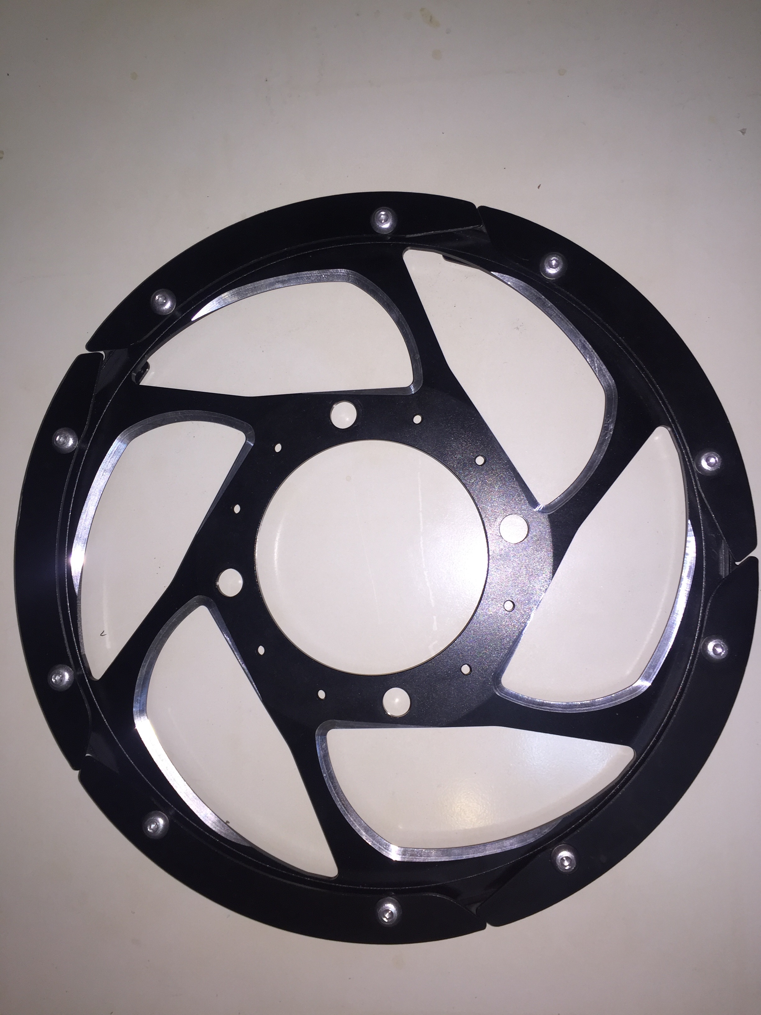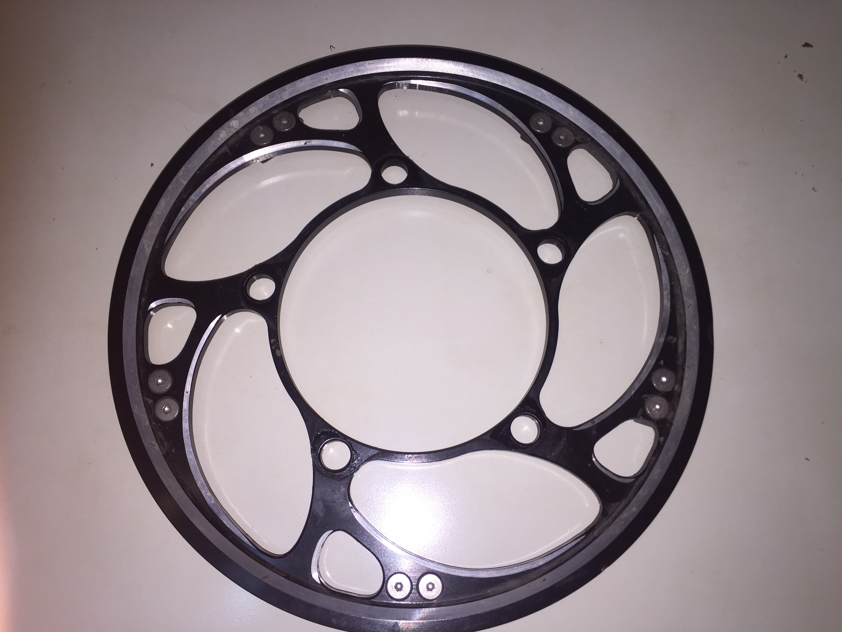 Деталь для складного велосипеда Strida. Есть стандартная комплектация в виде 1 скоростной каретки со 100 зубовой ведущей звездой и есть вариация с 2 скоростной кареткой, но там ведущая звезда в стандартной комплектации 80 зубьев и мне не совсем нравится соотношение передач на 1 скорости. Проблема в том что родная 100-зубовая звезда идет с 4 крепежными отверстиями, а 80-зубовая с 5 точечным креплением, поэтому захотелось заморочиться с кастомным тюнингом и поставить 100-зубовую звезду на 2 скоростную каретку.