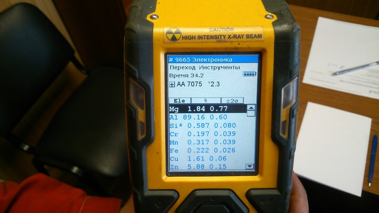 Для вашего и моего спокойствия сегодня металл с последней поставки просканировал хим. анализатором дабы убедиться что это в95 а не д16. Наличие преобладающей части цинка говорит о том чо это в95, да и на табло сразу загорелось 7075.