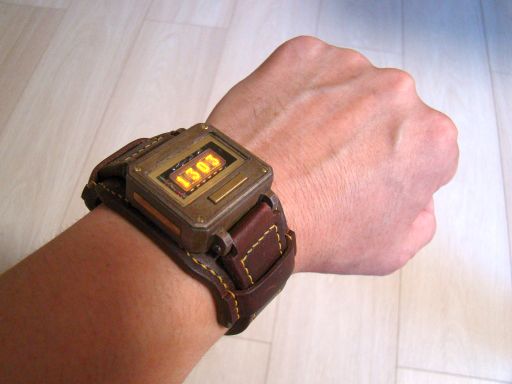 Размеры 47х46х23 мм, сделан из корпусов от наручных часов, мелочевка точилась на станке.