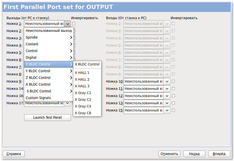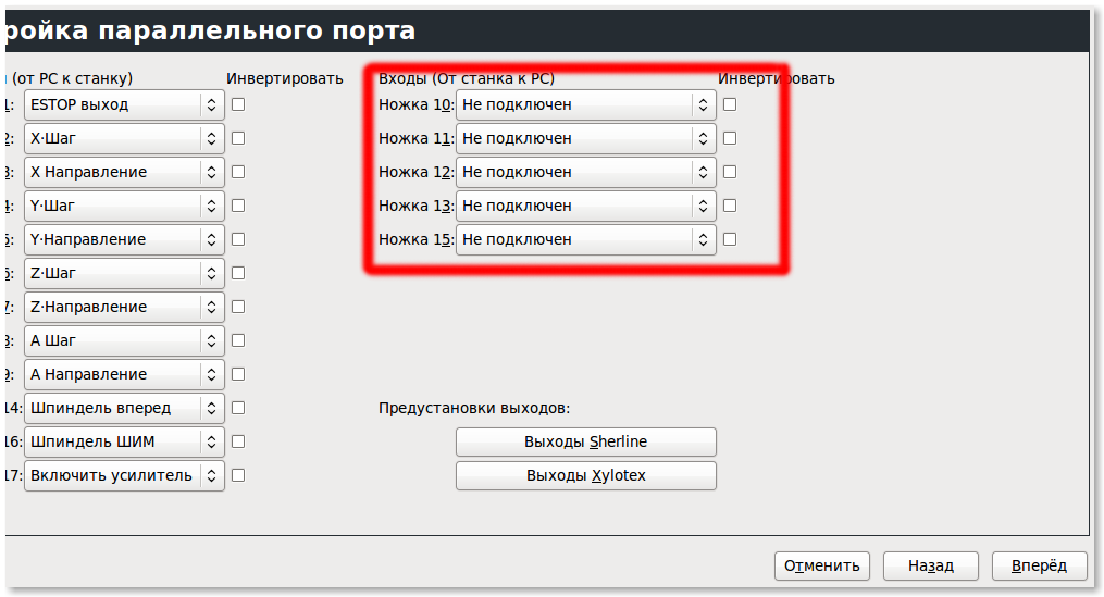 Запускаю Pncconf дохожу до выбора ножек, Что выбирать чтобы указать ШАГ и НАПРАВЛЕНИЕ (скриншот прилагаю).