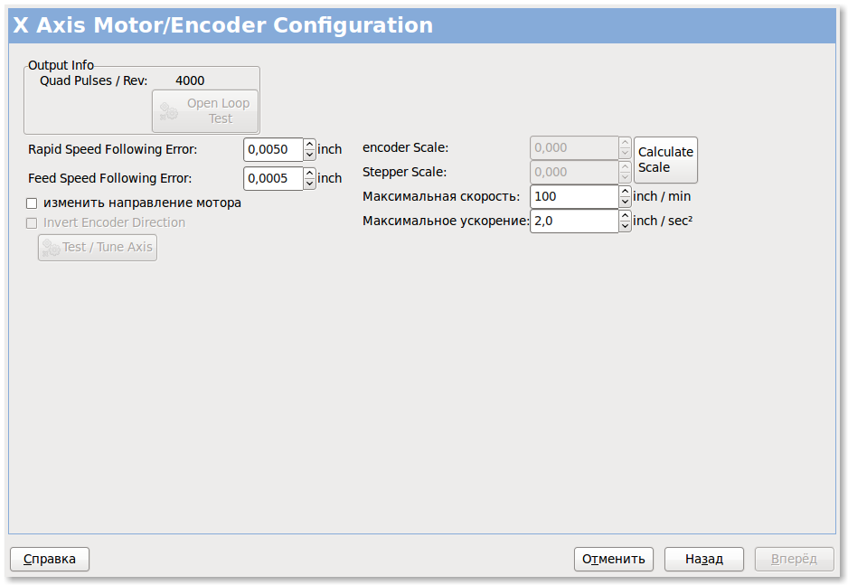 Еще проблема при конфиге в stepconf: что выбирать на входах что бы указать линейки?