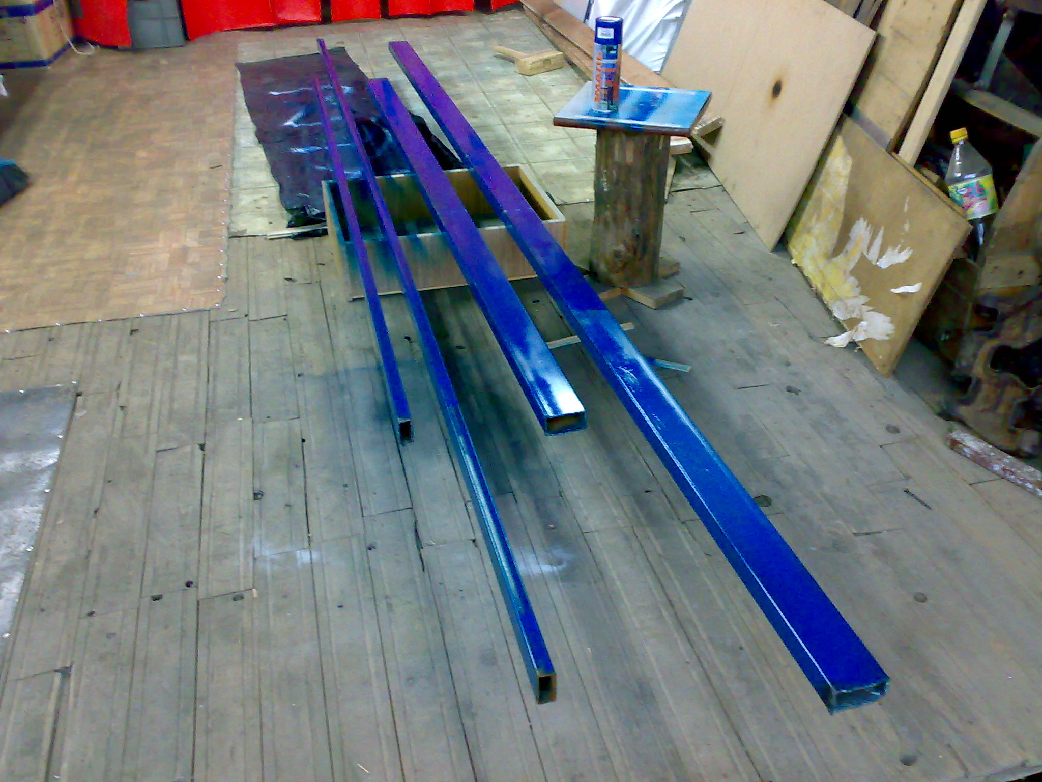 на фотках видно с права у стенки стоят 2 профиля . это будущие поперечки станка.
