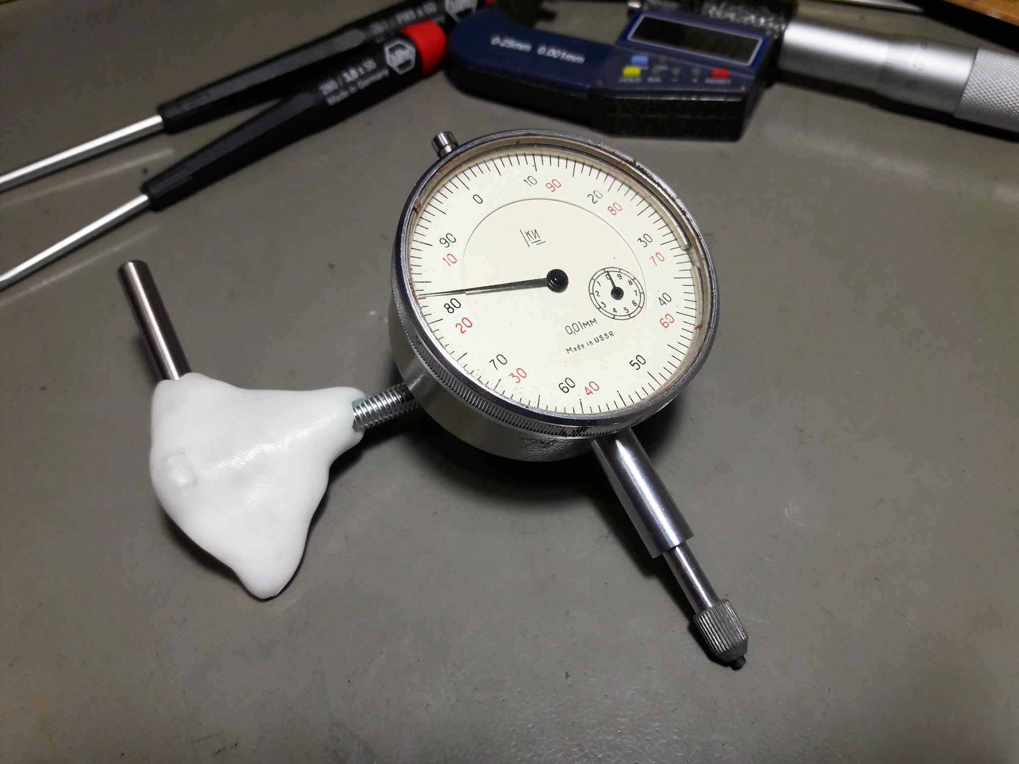 Далее попробовал зажать в шпиндель индикатор ИЧ и обкатывать вручную окружность по жертвенному столу из фанеры. На вылете 65мм показания скачут +-0,2мм, но это вроде бы не так критично. Да и учитывая, что я давно не фрезеровал жертвенную фанеру, она могла вспучиться от сырого калининградского климата. Вообщем, проблема с вертикальностью шпинделя пока отходит на второй план.