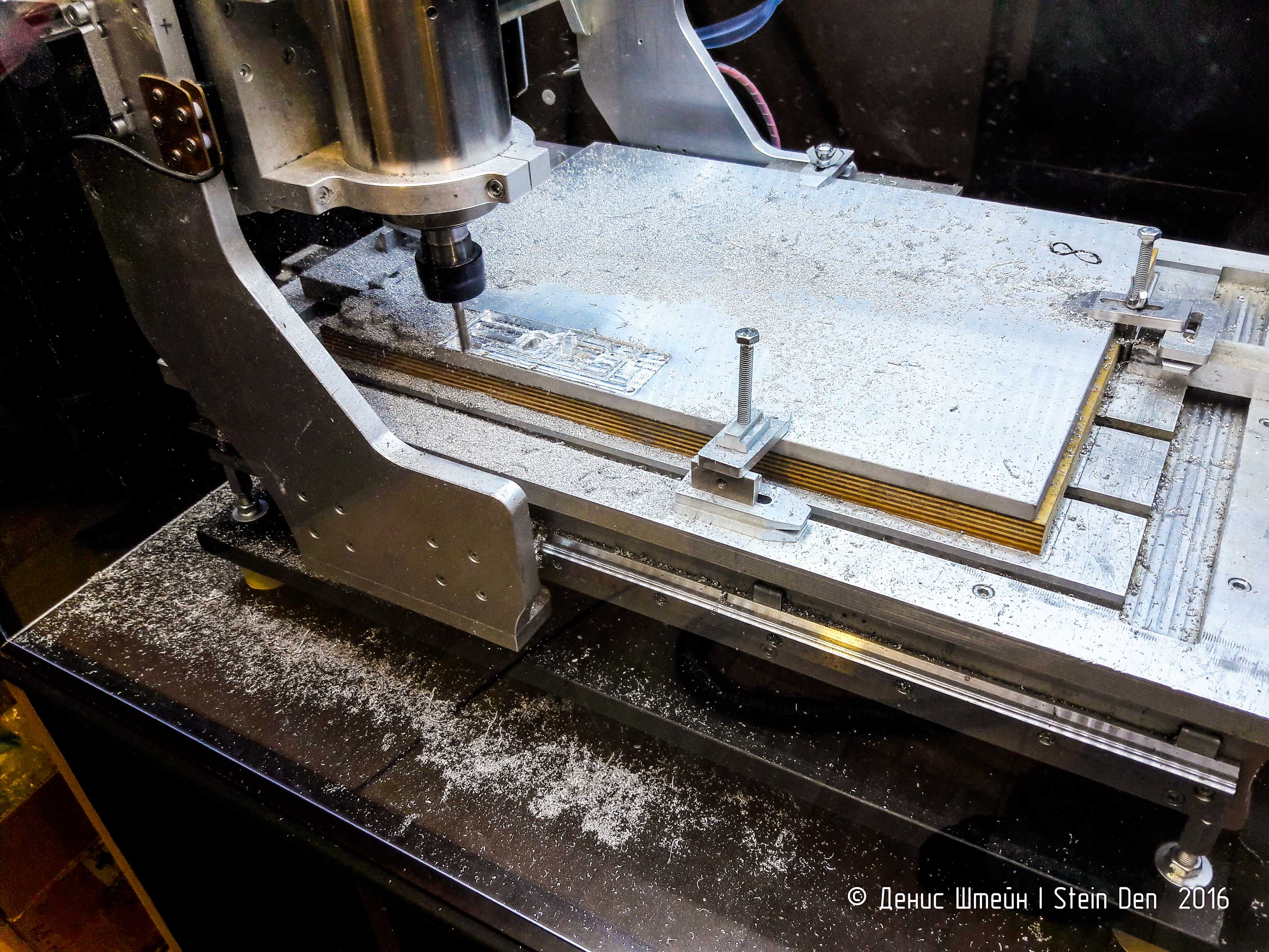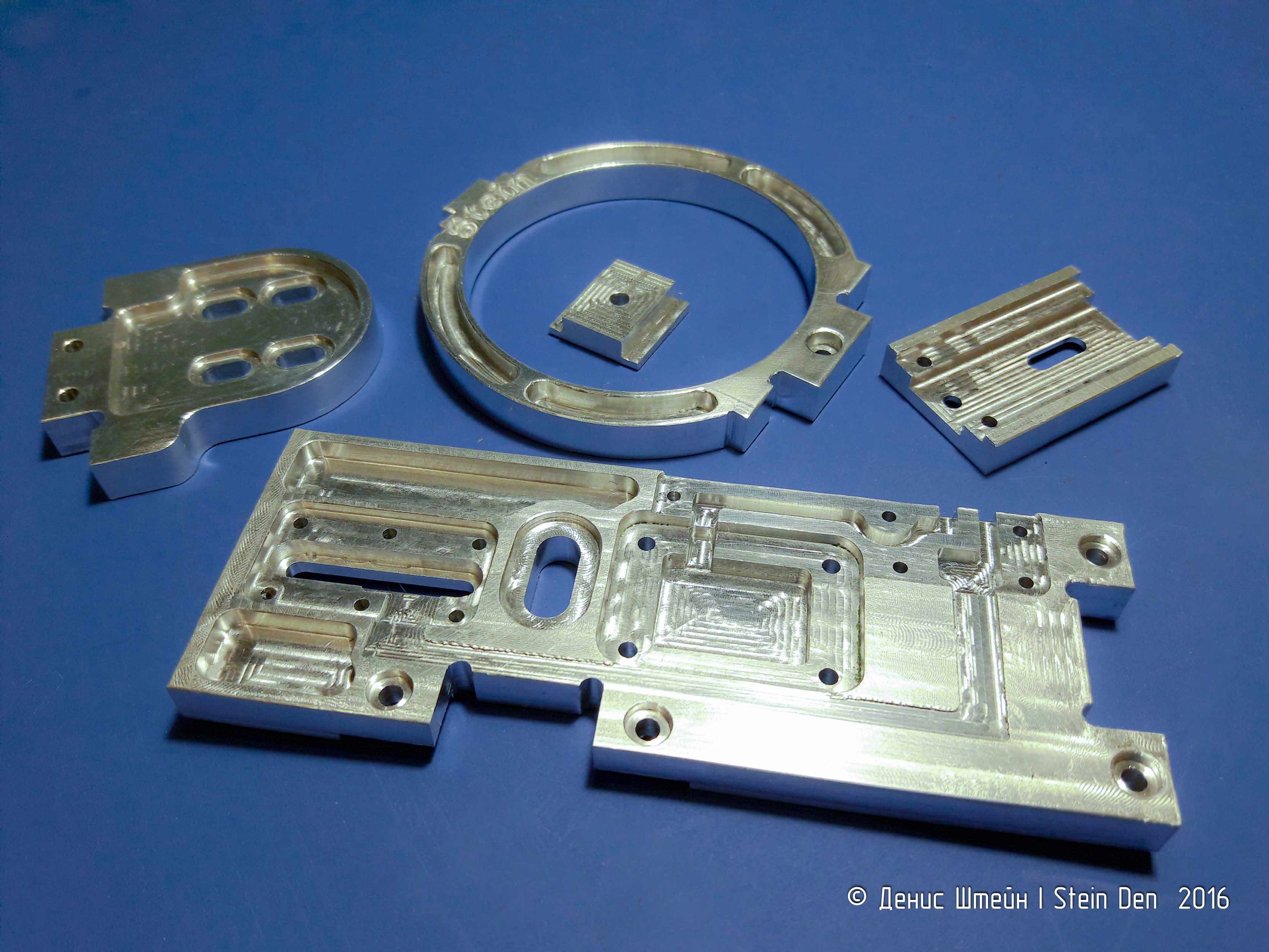 Запилил некоторые детали из Д16Т. Все пилил на сухую, без СОЖ, кроме гравировки текста - там использовалась "кукуруза" 0,9мм, с ней пилил в жидком масле.