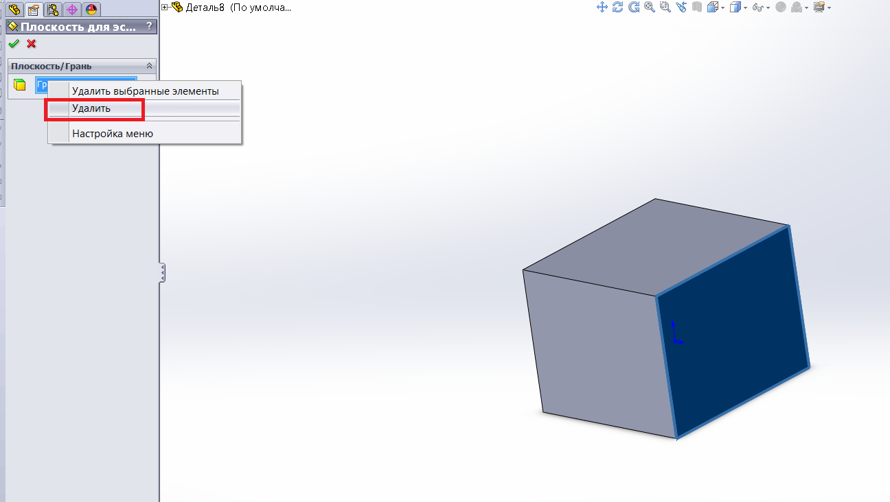 Бармалей писал(а):Есть деталь, куб. На одной стороне его сделан вырез сложной формы. Необходимо сделать такой же вырез(точнее, часть его, самую сложную) на примыкающей(перпендикулярной) грани. Как скопировать эскиз или часть эскиза на другую плоскость?