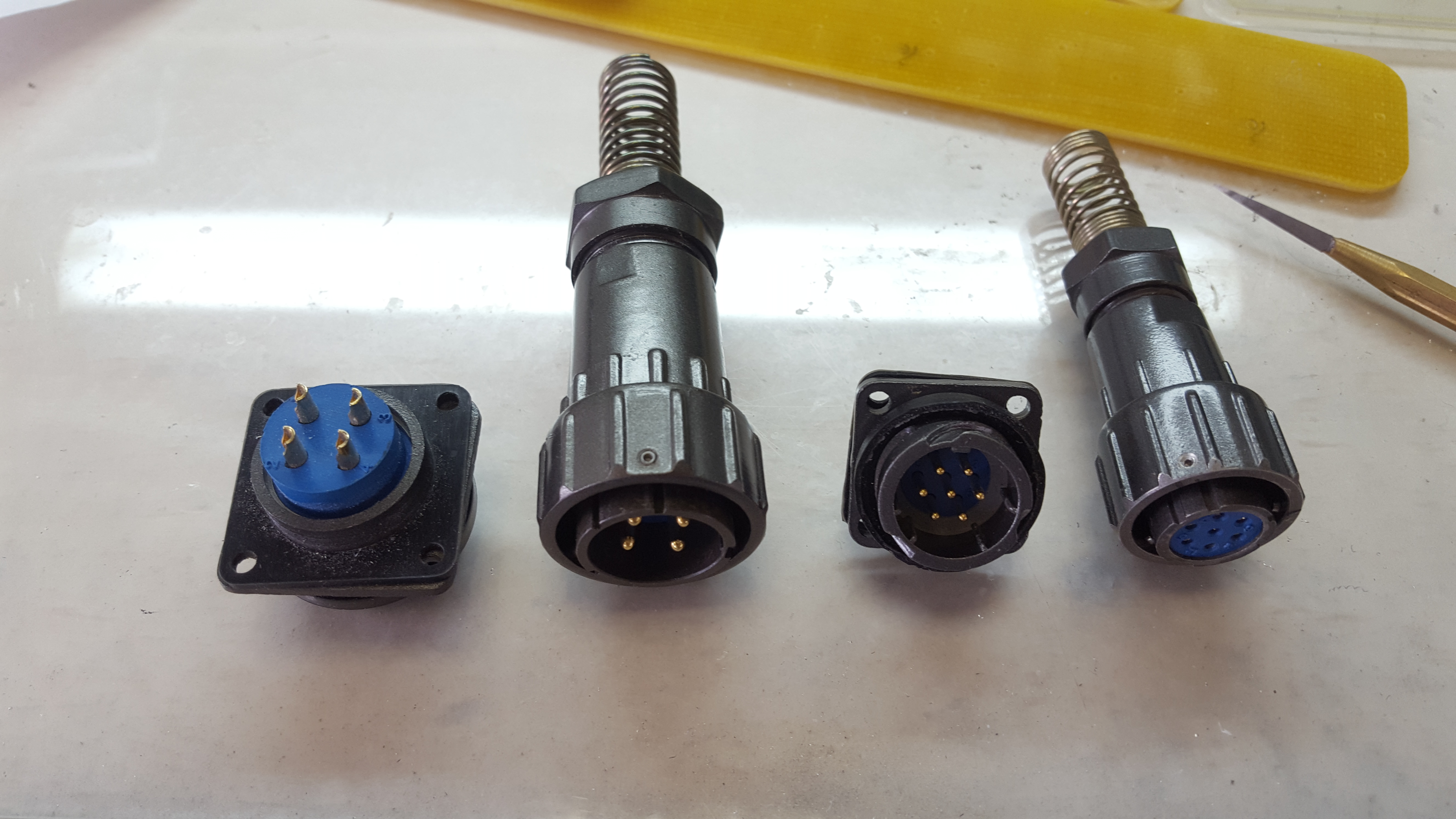 Про твои разъёмы ничего не знаю. Но вчера был инцидент с моими. Взял один разъем 4pin 12A 400V 20mm, лежали в запасе для шаговиков, и вывел с помощью этого разъёма кабель из электрошкафа от частотника 1,5кВт к шпинделю, всё аккуратно распаял, термоусадки и т. д. - в итоге искры в разъёме при пуске частотника и частотник уходит в ошибку КЗ на выходе. Разъём сам по себе крупнее штатного в шпинделе и расстояние между контактами не меньше, а искрит просто пипец.
