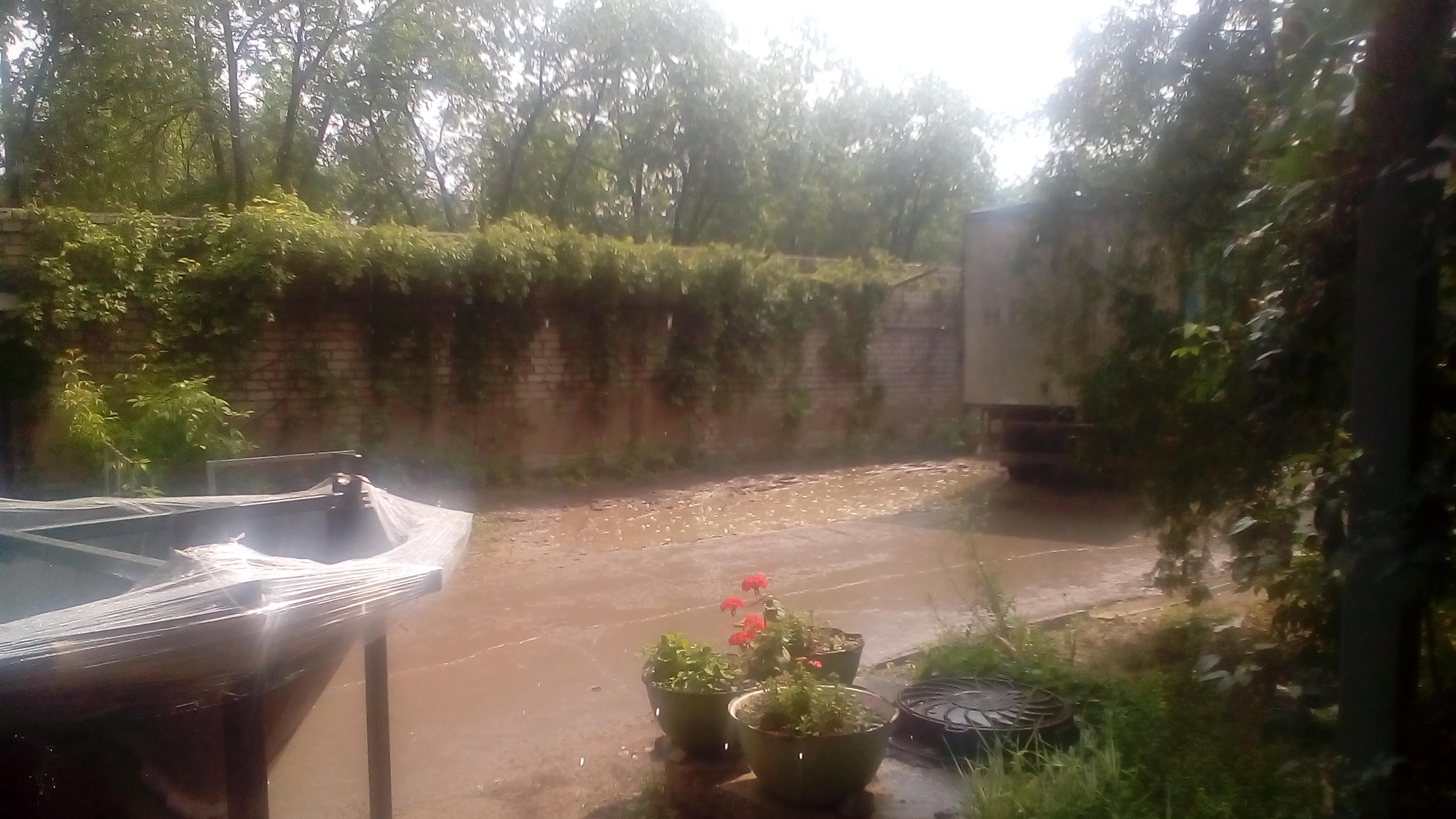 Надеюсь, не сильно испорчу тему корявыми фотками на телефон, фотограф с меня никакой. Только что начался небольшой ливень с грозой... ...при ярком солнечном свете. В живую очень красиво.: