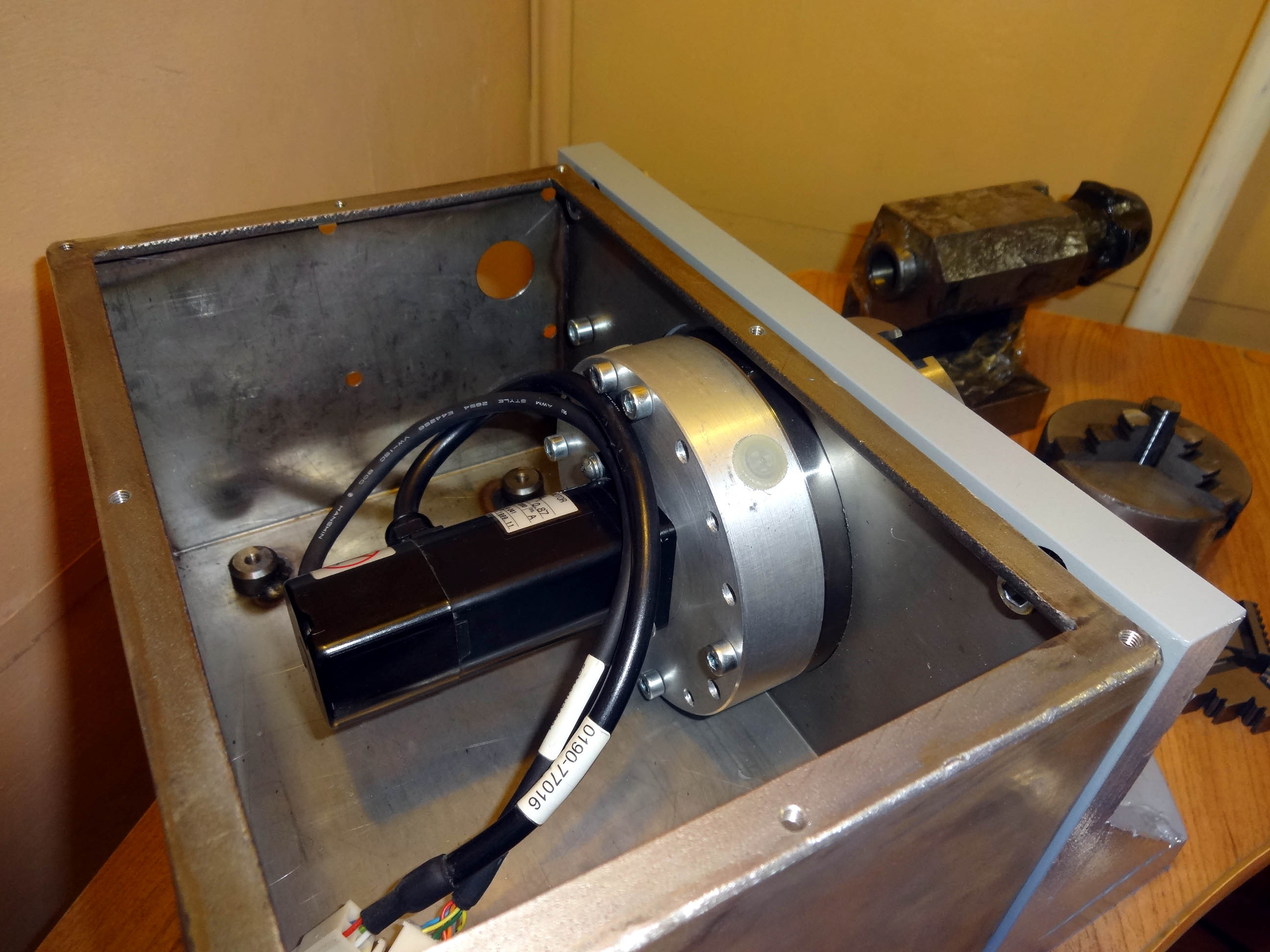 редуктор гармонический 25-100, 100-ваттная серва. кожух из нержавейки (буду еще шлифовать для красоты и чтобы перекликался с панелью оператора).