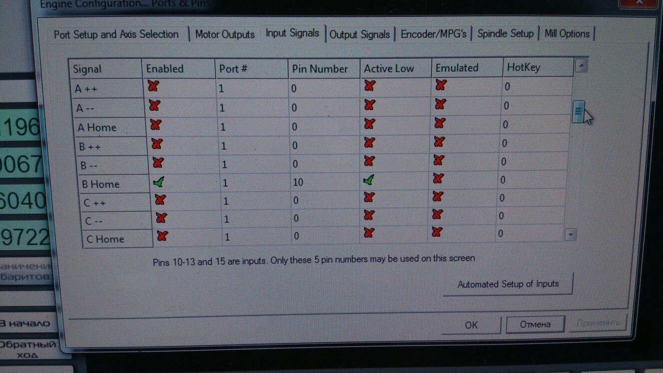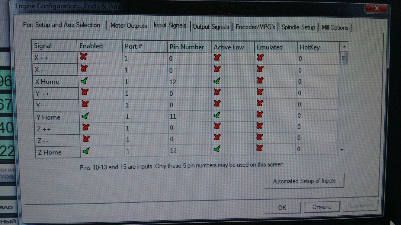 Можно объединить несколько сигналов на одном входе (например, датчик по Z, датчик длины инструмента и датчик, например, оси X). Mach3 опрашивает эти сигналы в разное время, так что конфликта не будет.