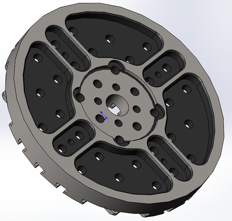 потихоньку рожаю 5 ось, пока что прикидываю как оно будет с подшипником YRT80, в центр планшайбы хотелось бы иметь возможность воткнуть КМ3, но само отверстие в планшайбе скорее всего не позволит втыкать на всю глубину, пока еще толком не проверял..