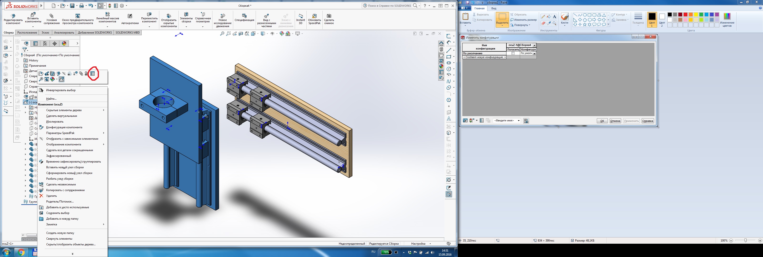 Теперь делаю третью сборку из готовых сборок оси Y и Z - т.е. компоную оси между собой - как итог не могу ничего перемещать.
