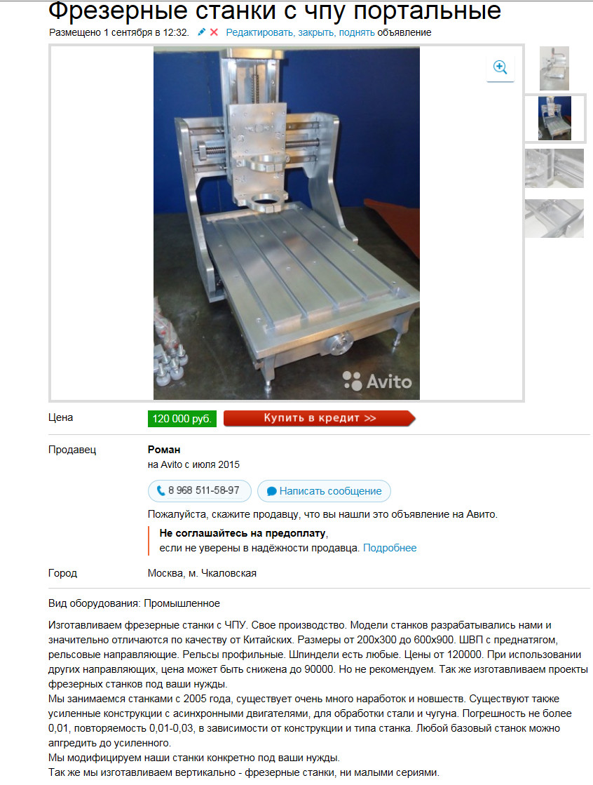 Вроде тема Наиля все еще присутствует, никто ее не сносил. А объява на Авито - естественно, перекупы. Обычные эффективные менеджеры. Сделать денег, не отрывая задницы от кресла. Их сейчас развелось как грязи. Это токарей и фрезеровщиков нету, а менеджеров - "ну прямо завались. Вот и шлют кому попало." Не удивлюсь, если от Наиля станок сразу "дропшипом" поедет к покупателю.