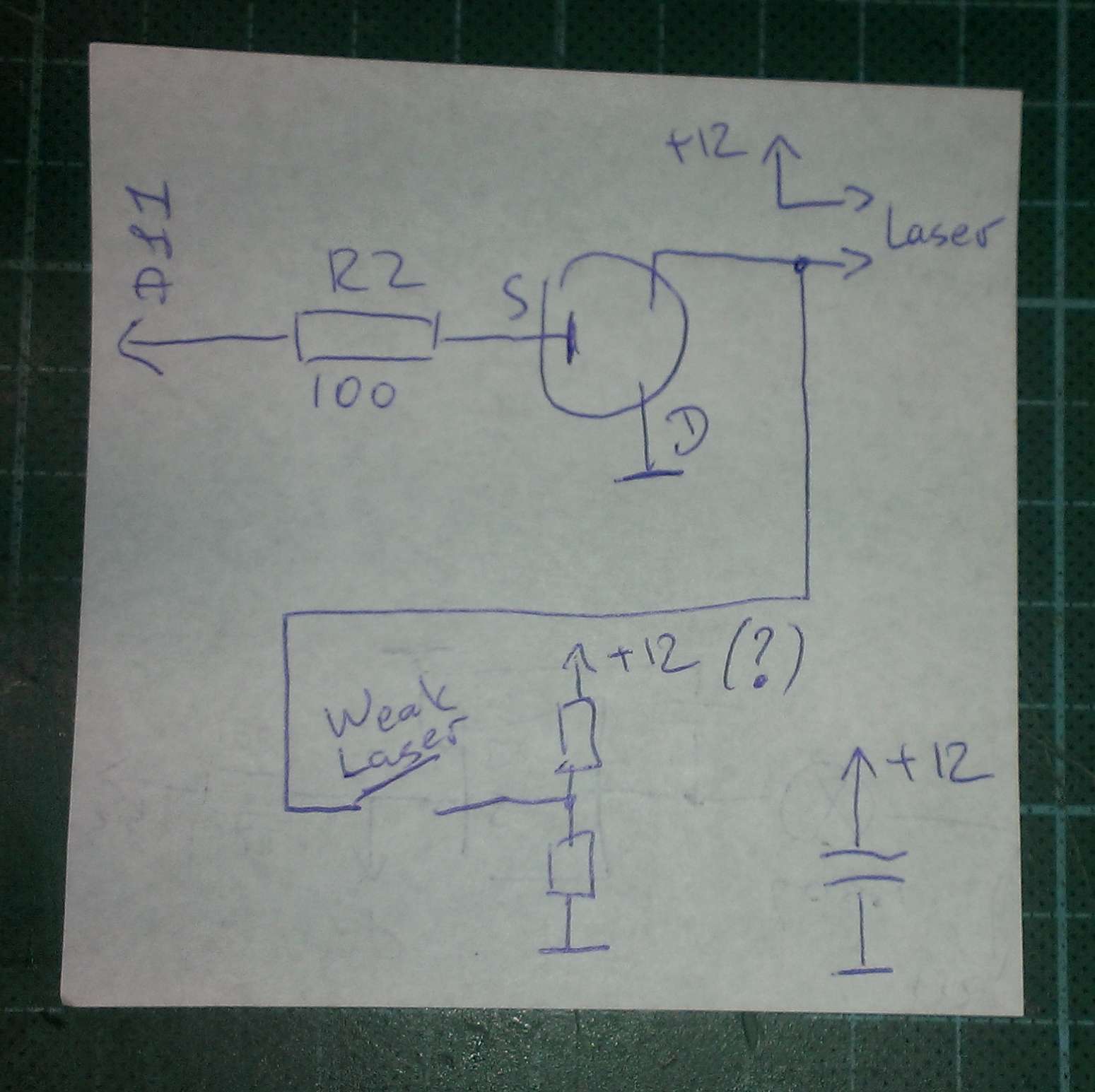 Интересует часть управление лазером, кнопки weak laser и обвязки LR7843