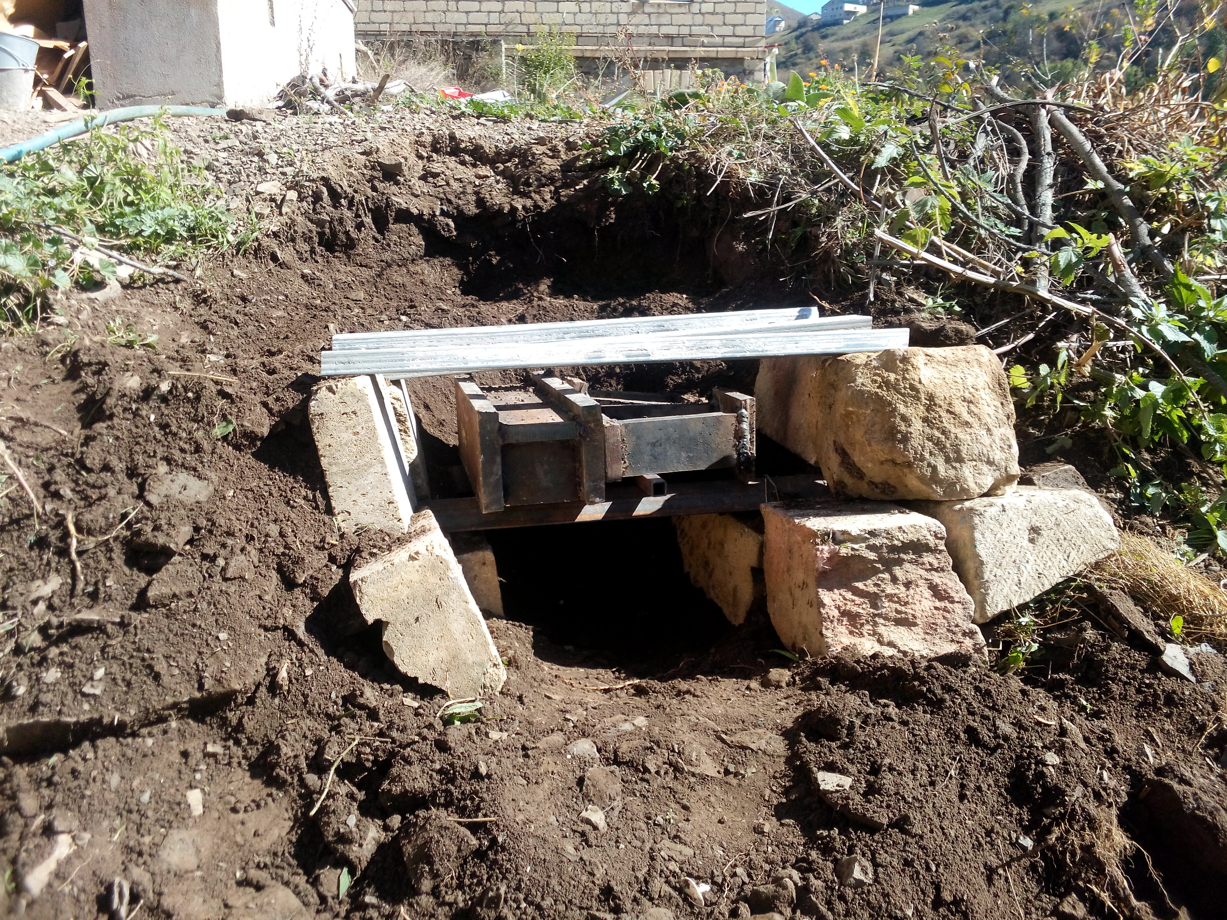 куски уголка. Вертикальные стойки по низу обвязал такой же трубой. 100х100 избыточно.