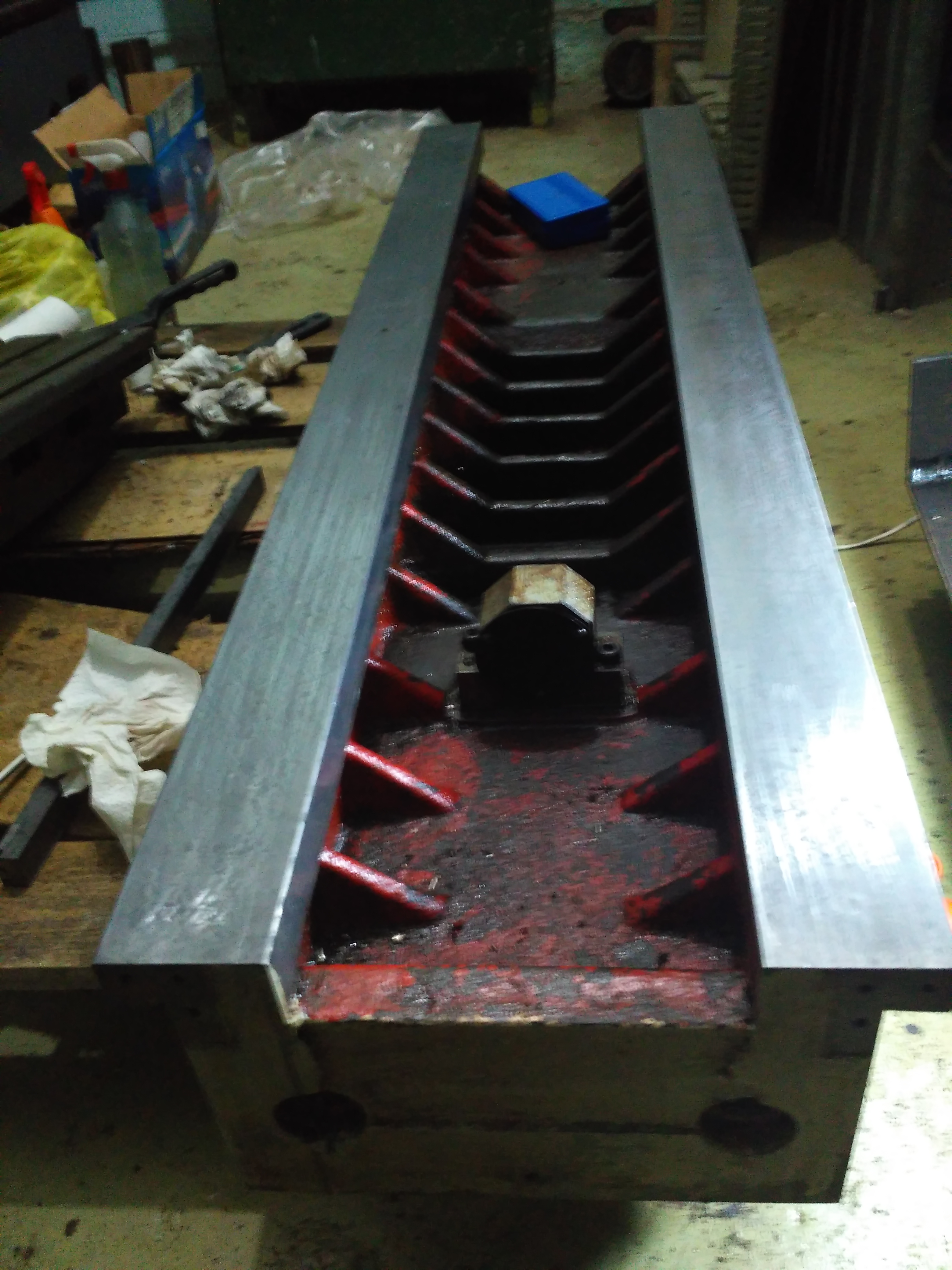 А вот промежуточный стол не айс... одна направляющая для стола работала без смазки, канал смазочный забит. в следствии чего задиры и образование лодочки. теперь ищу место где ее смогут отшлифовать. размер ее примерно 1200мм по длине, 300мм по высоте и 350мм по ширине, длина и ширина направляющих которые нужно шлифовать 1200мм на 60мм 2 штуки.