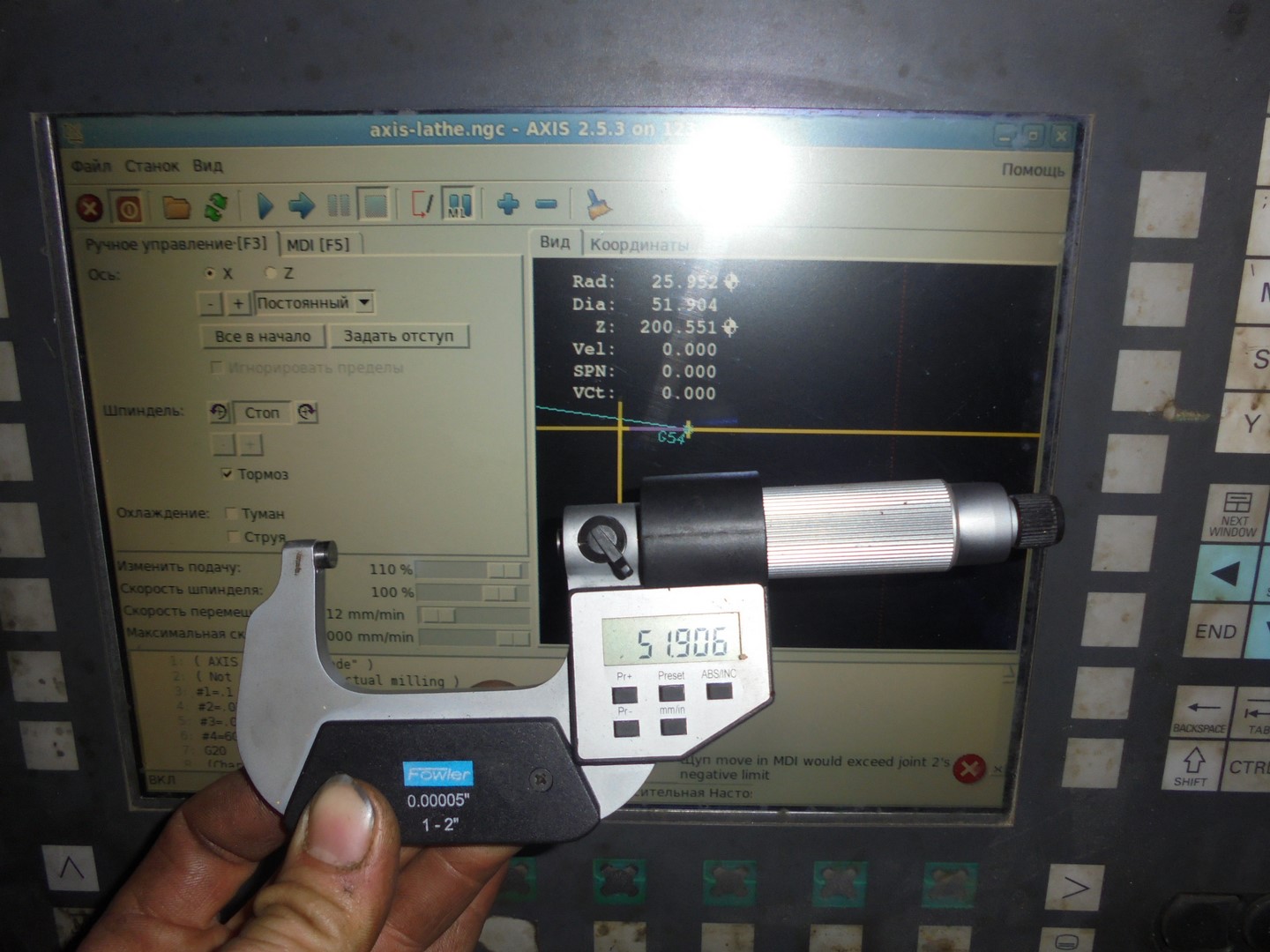 Выточил удлинитель под измерительную площадку, обкатал индикатором как по мануалу.