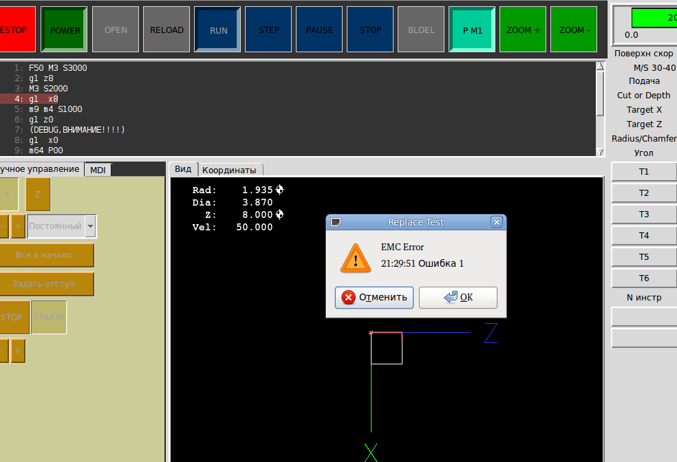 Все сохраняем, запускаем LinuxCNC, пробуем и пишем отчет со скриншотами :)