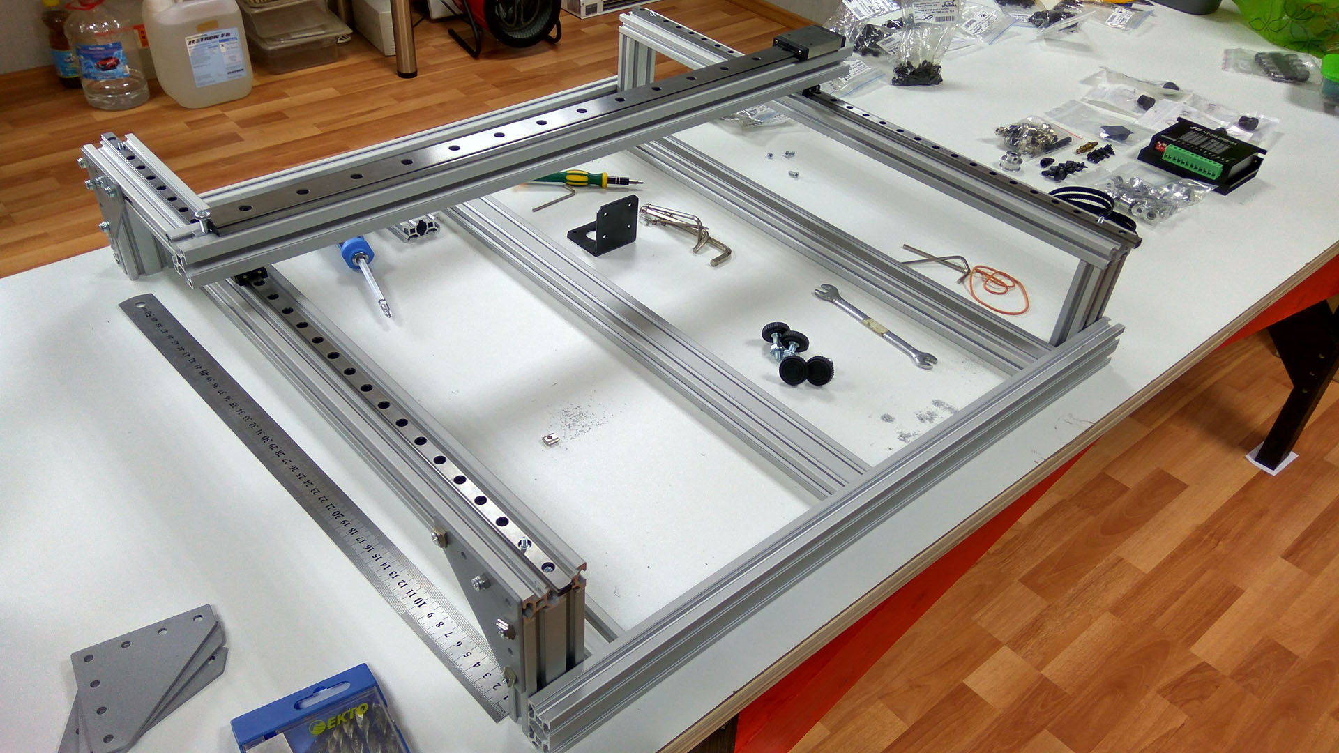 Пока пытаюсь точить из дюраля на своем китайце планки для крепления рельсов. Как освоюсь с режимами начну резать остальные дюралевые детали.