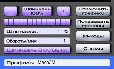 Если в настройках шпинделя ("Spindle Pulley") выставить максимальные обороты 1100, то в программе все отображается честно: 100% -1100 оборотов. Правда верхняя шкала показывает 50%, что не совсем корректно: если выставляется МАКСИМАЛЬНАЯ частота вращения, то шкала должна быть заполнена полностью, на 100%.