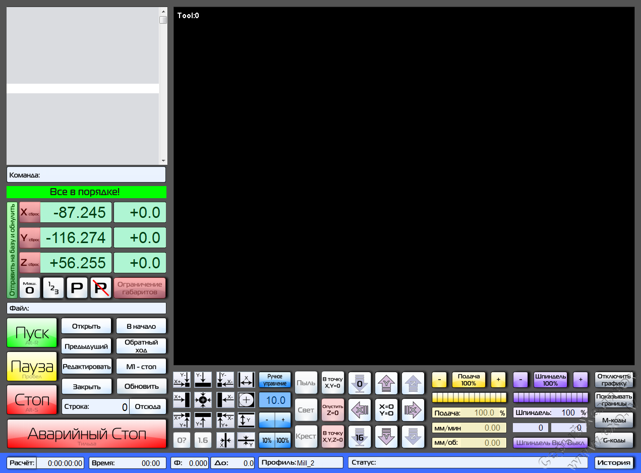 Попытка забить любое значение скорости в поле "обороты/мин" приводит к установке скорости "-1". Загружаю скринсет "1024" устанавливаю скорость в поле "Spindle Speed" 25000, вертикальная шкала правдивая: 50%=12500. Загружаю русскоязычный скринсет, все работает шкала правдивая 50%=12500. После перезагрузки программы