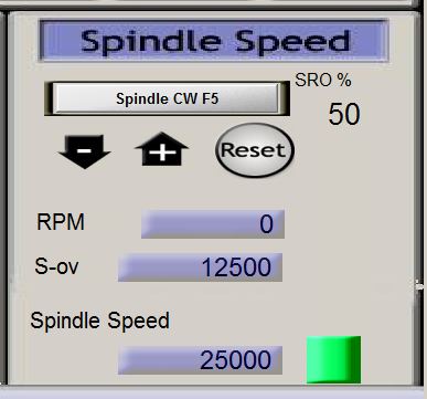 Попытка забить любое значение скорости в поле "обороты/мин" приводит к установке скорости "-1". Загружаю скринсет "1024" устанавливаю скорость в поле "Spindle Speed" 25000, вертикальная шкала правдивая: 50%=12500. Загружаю русскоязычный скринсет, все работает шкала правдивая 50%=12500. После перезагрузки программы