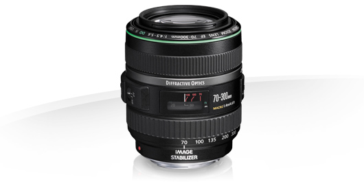 "Это первый объектив DO, выпускаемый компанией с тех пор, как был представлен удостоенный многих наград объектив Canon EF 400mm f/4 DO IS USM, ставший настоящим открытием для фотографов. Новый объектив приблизительно на 26% короче и на 36% легче своего ближайшего конкурента. Применение нового трёхслойного оптического элемента (DO) позволило существенно уменьшить длину и вес системы в целом, а также увеличить преломляющую способность каждой линзы и сократить расстояние между элементами. Хроматические аберрации, обычно неизбежные для компактных объективов, удаётся скорректировать за счёт переднего расположения трёхслойной линзы DO. Благодаря этому, а также благодаря коррекции сферических аберраций за счёт использования асферических элементов новая модель по качеству изображения, разрешению и контрастности приближается к легендарным объективам Canon серии L".