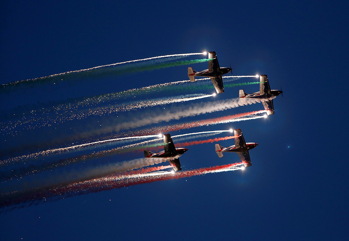 Интересно снято: Звёздочка и самолёты не размыты, синее небо...