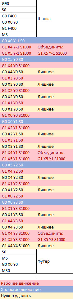 3. Убрать лишние G0 на переходах яркости;
