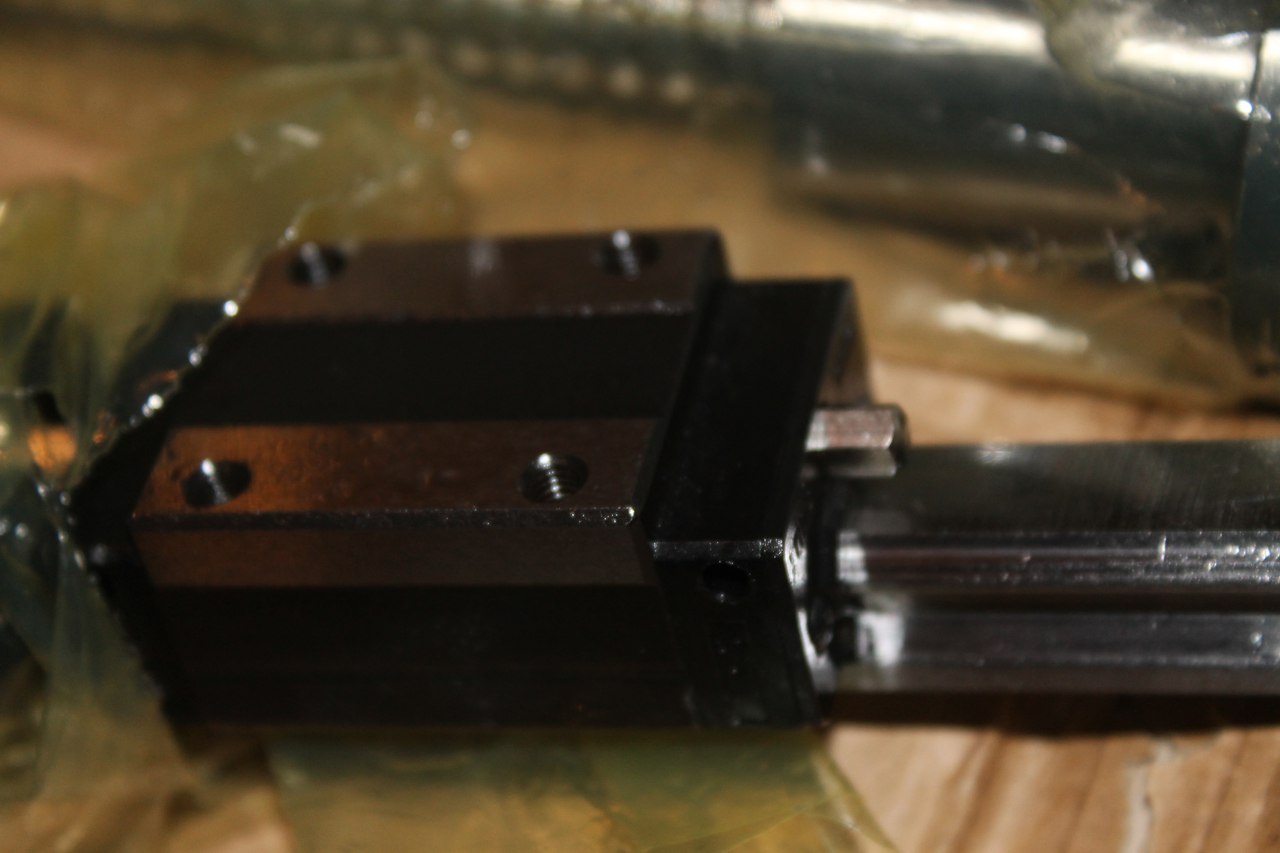 Заказывал со средним преднатягом. Ходят каретки плотно, но есть шум. Скорее всего херово отшлифованы сами каретки, шлифовка на рельсах в норме. В принципе ничего страшного это легко лечится пастой Гоэ. А вот винты порадовали, даже не ожидал такой плавности хода, люфтов на ощупь не замечено, а там уж посмотрим. Специально искал гайки с 4-мя нитками шариков, а ни как обычно по 3.