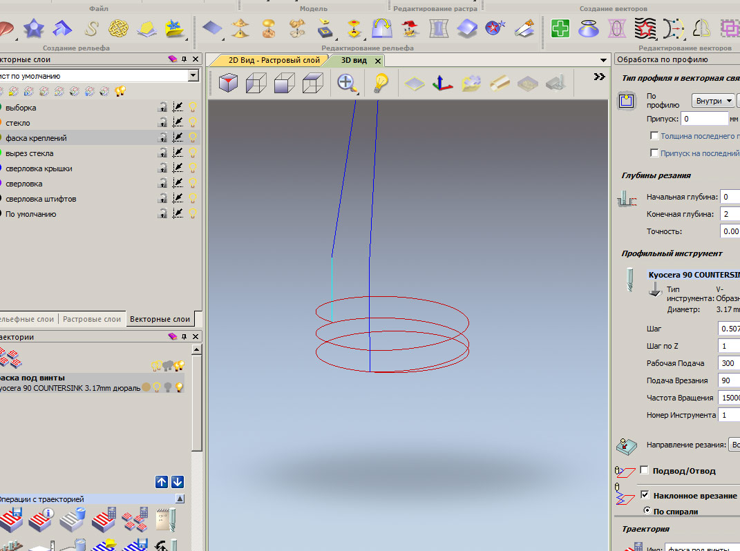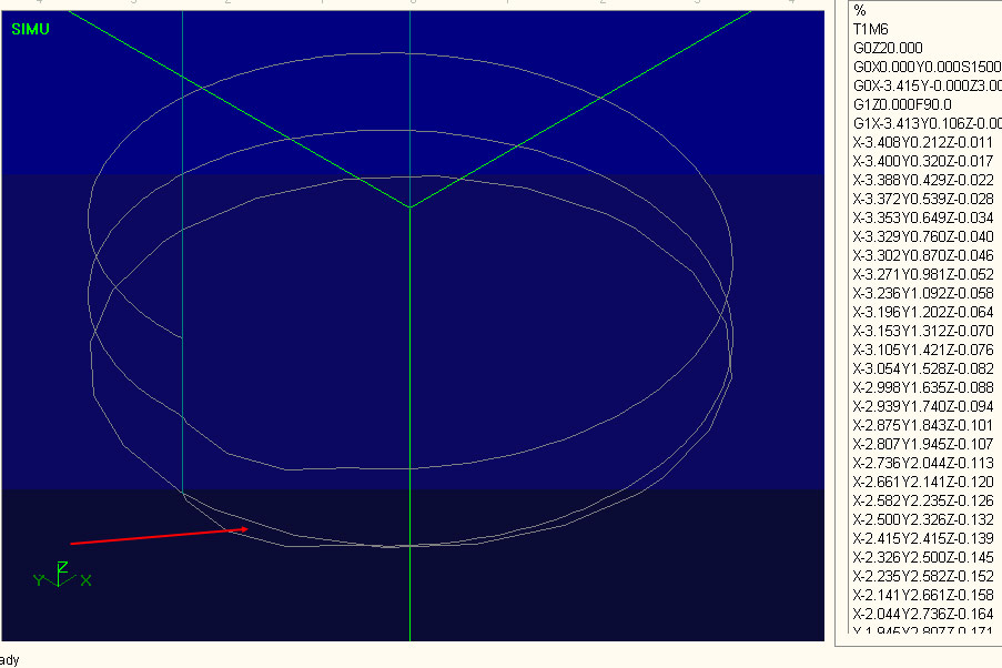 то есть, если создать в ArtCam окружность установив галку в опции "создавать дугами" затем сделать УП обработки по профилю, поставив врезание по спирали, получив такую симуляцию: постпроцессор для экспорта NC-Studio-Arc.con
