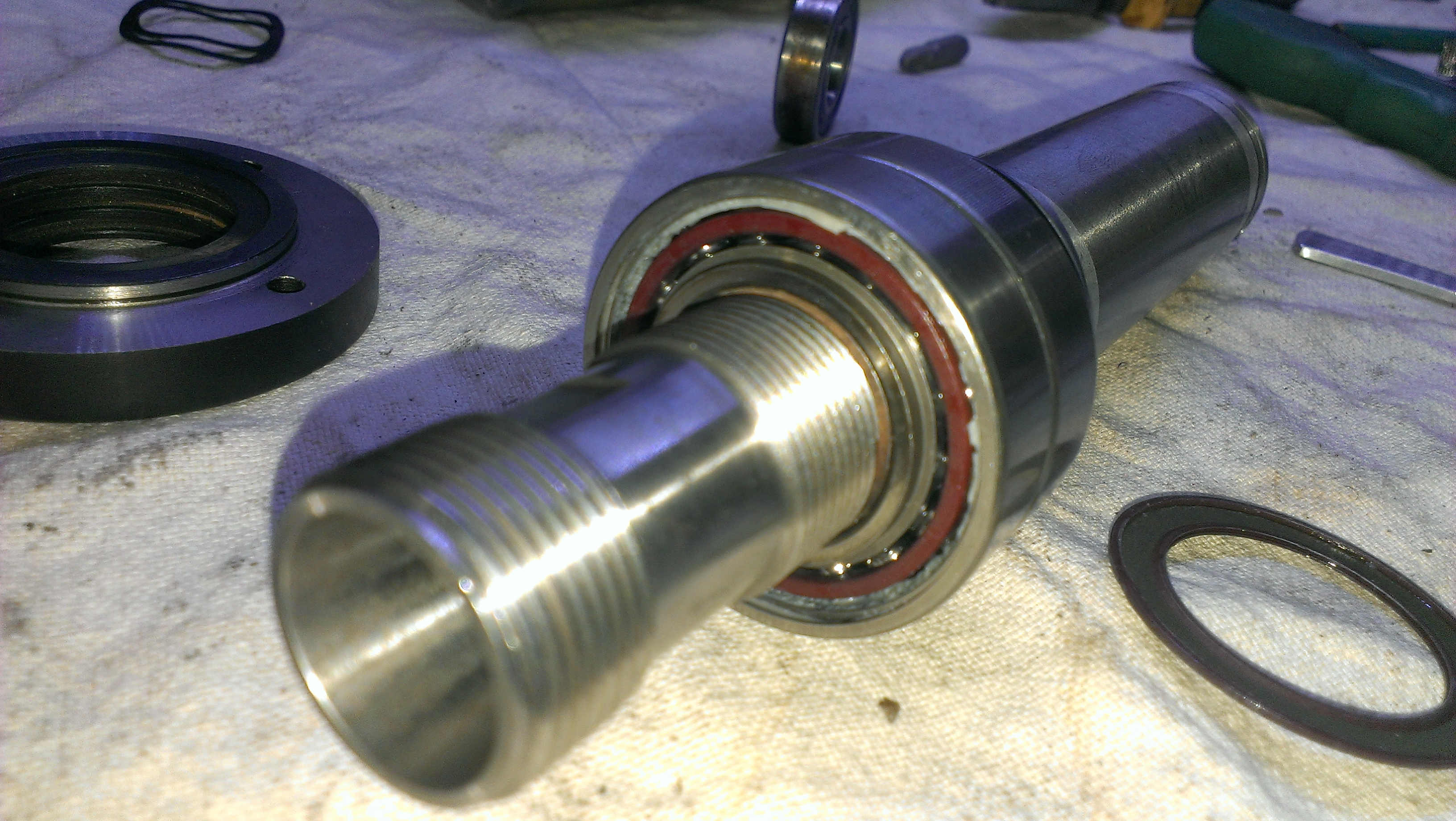про 7005C тоже инфа не утешает как то : Каким способом снять эти 2 подшипника пока не знаю. там вроде и зацепиться за не за что ,только за внешнюю обойму тянуть сьемником. И встает делема : покупать типо фирменные за 100$ и надеятся ,что это не подделка или поставить обычные радиально-упорные и менять их раз в год. Всеж не так жалко будет если убью их не правильно сделав преднатяг гайкой.