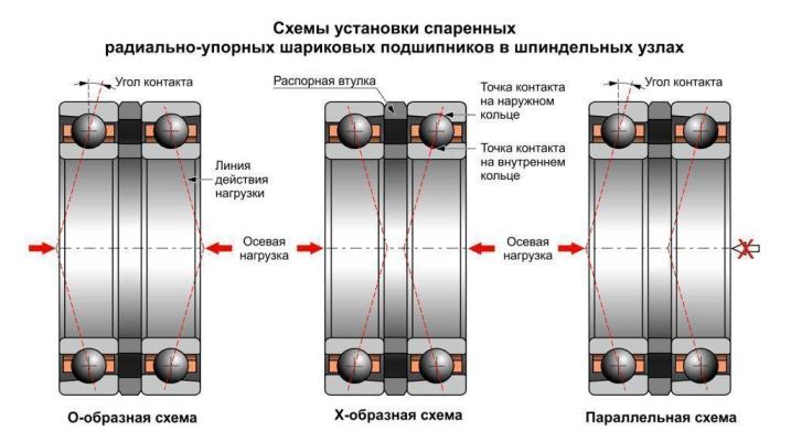 На дуплексных подшипниках есть стрелка, которая указывает как нужно совмещать оба подшипника при сборке.