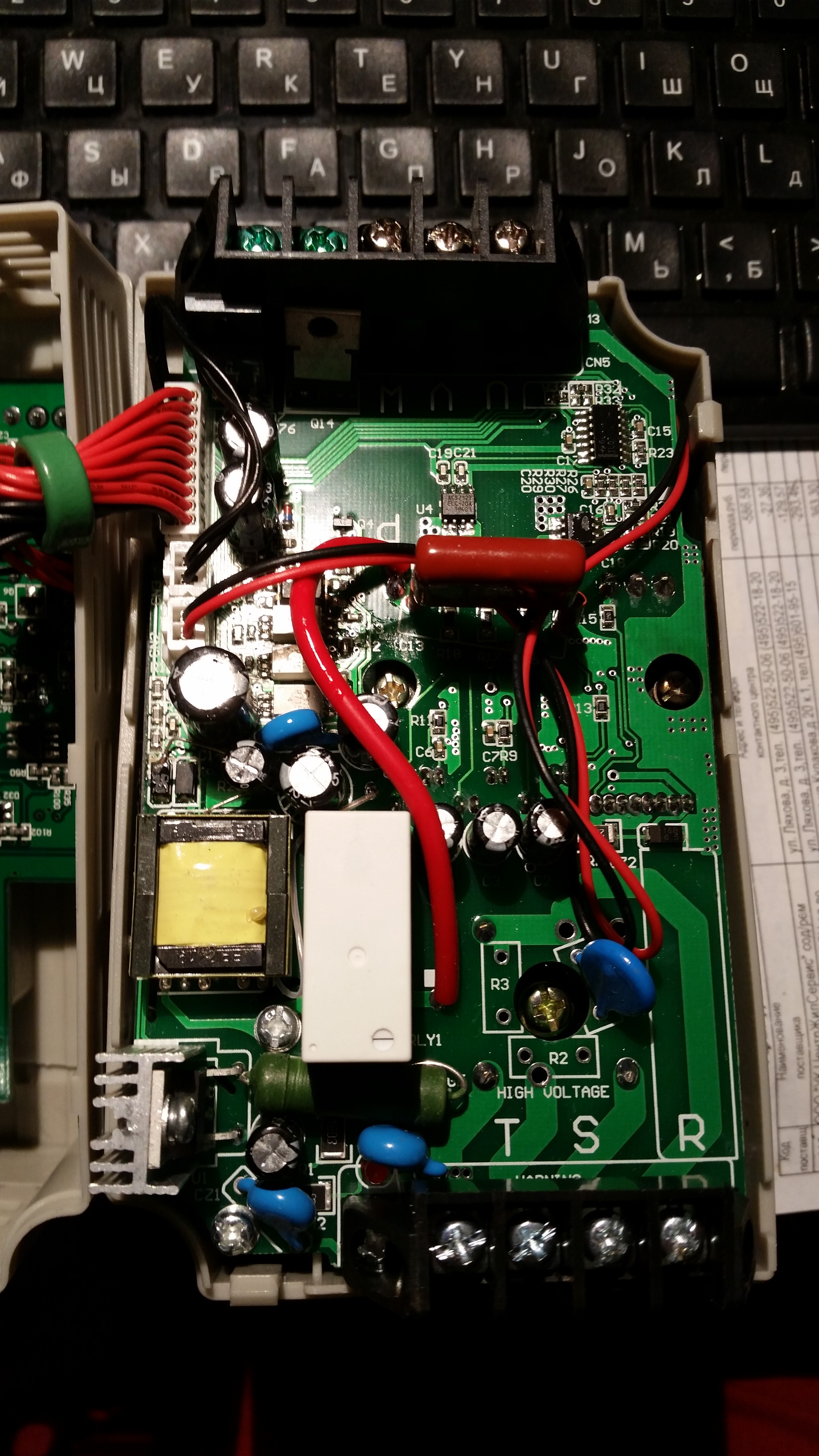 Отключил провода, дабы померить на выходе ПЧ, тут он в руках и испустил волшебный дым. :hehehe: