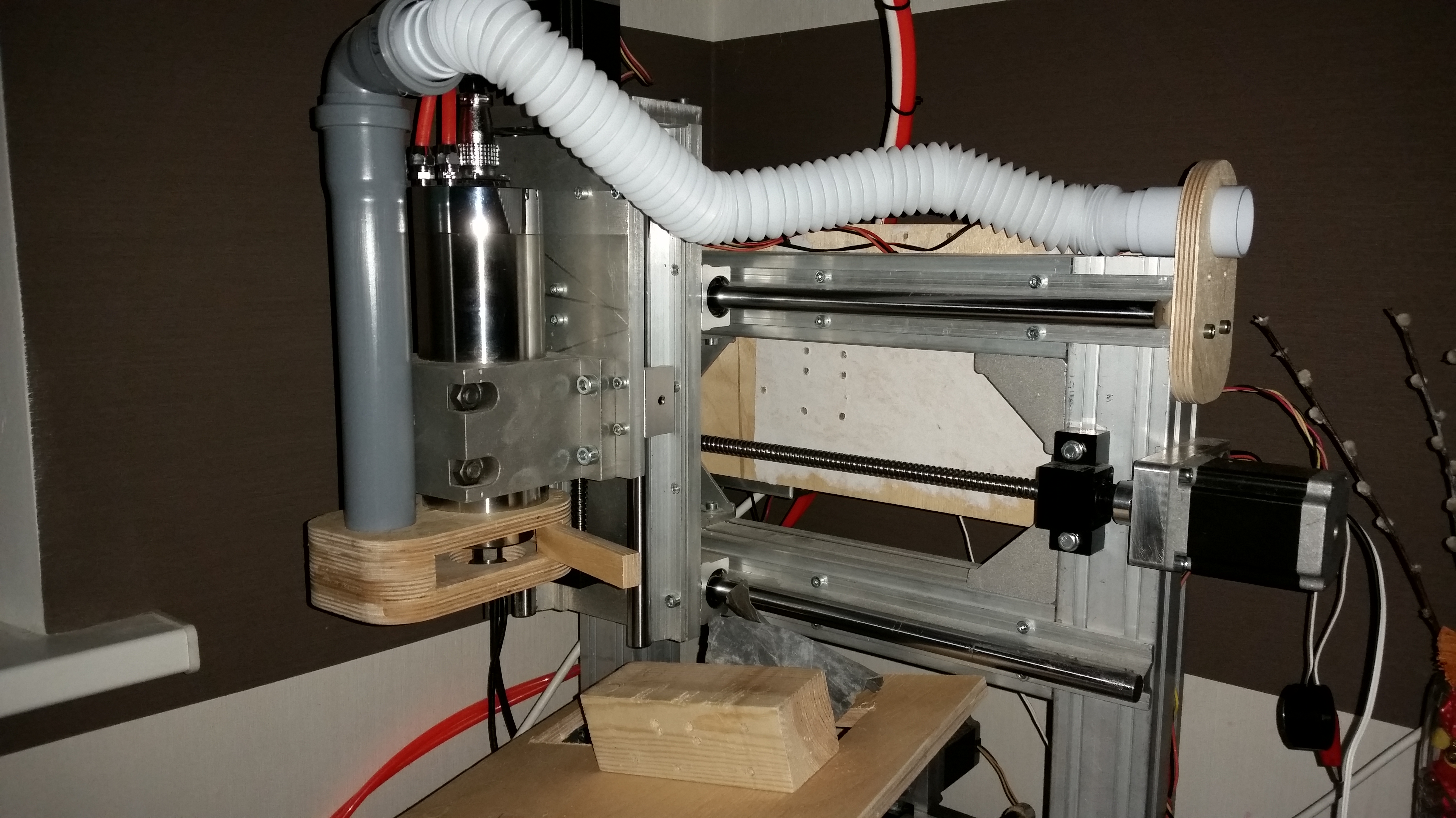 Вытяжка опилок и пыли со шпинделя. с прижимами вообще красота - пара минут и заготовка стоит.